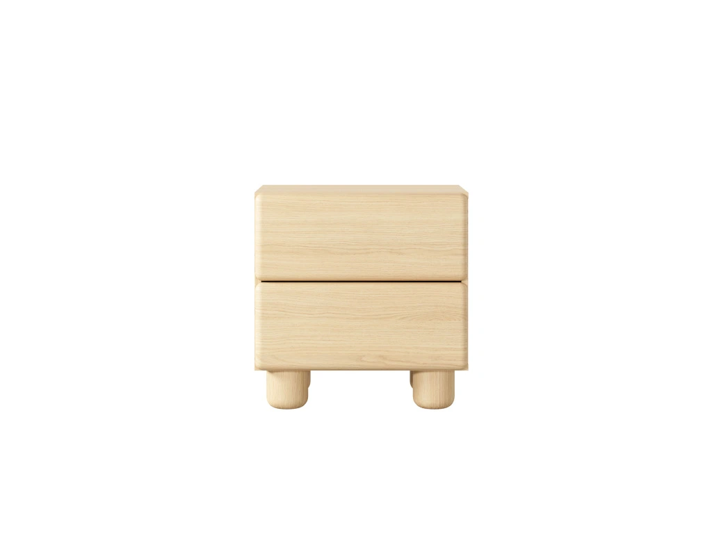 Noční stolek Lomo 2S nabízí praktický prostor pro odložení nezbytností a zaujme jednoduchým, čistým designem. Kolekce Lomo v sobě spojuje minimalistické tvary s jemně zaoblenými liniemi a teplým dekorem světlého dřeva dub Vicenza. Výrazným prvkem jsou zaoblené hrany a masivní válcovité nohy, které dodávají nábytku osobitý, téměř sochařský charakter. Díky absenci úchytek a systému push-to-open vyniká čistý design a celek působí klidně, harmonicky a přirozeně v každém interiéru.