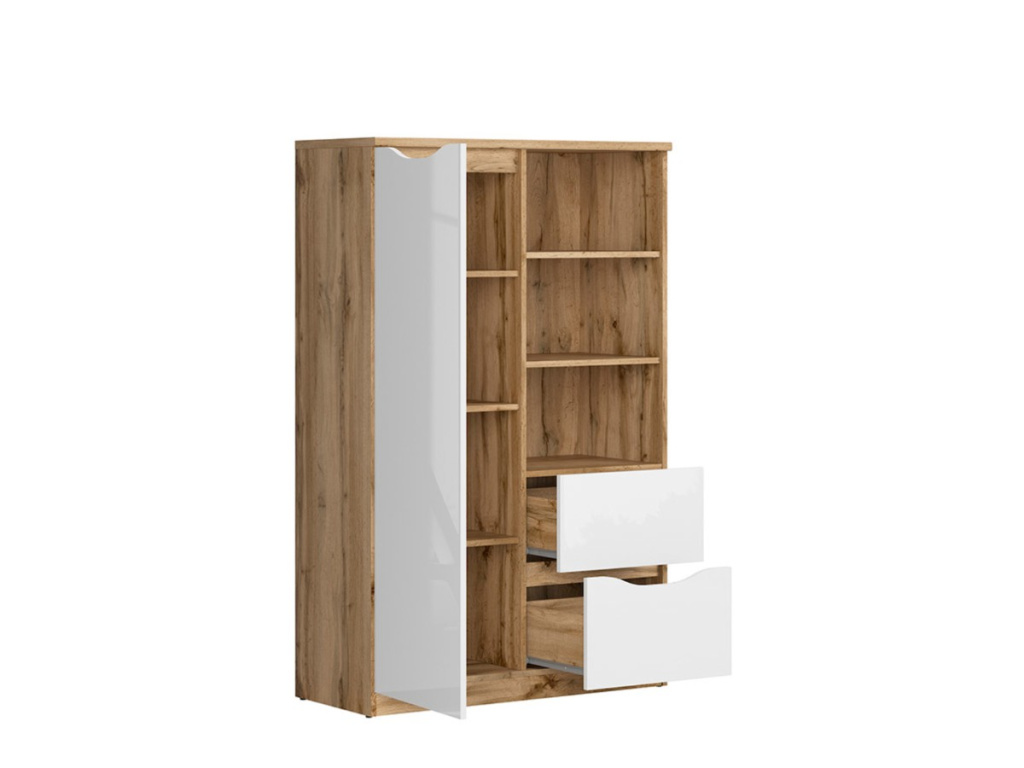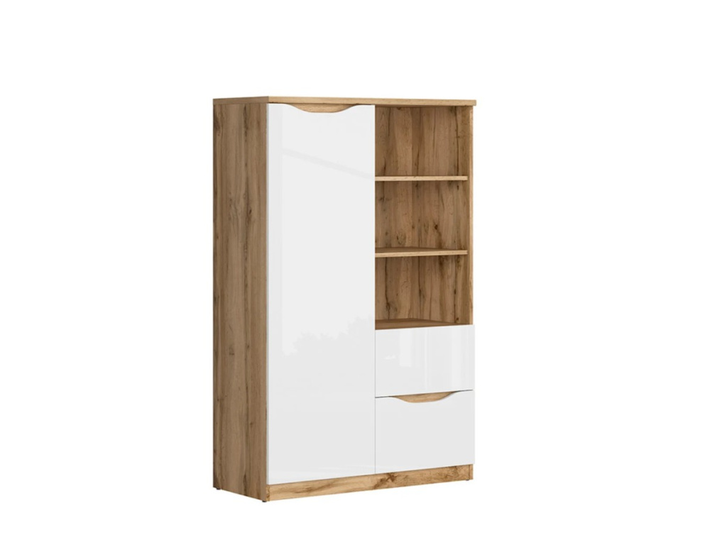 Pokud máte prázdný, nevyužitý roh v místnosti a chcete ho zútulnit pak je pro vás regál NUIS REG1D2 dobrým začátkem. Spolu s jiným nábytkem z kolekce NUIS můžete uspořádat prostor v místnosti. Regál NUIS je vyroben z lamina v barevném provedení dub wotan/bílý lesk. Je sestaven z otevřené i uzavřené části. Úložný prostor je v podobě jednotlivých polic, jež usnadní přehled v ukládaných věcech. Dále jsou pak k dispozici šuplíky. Dodáváno v demontu. Montáž je jednoduchá. Dodáváme ve 3 bal.