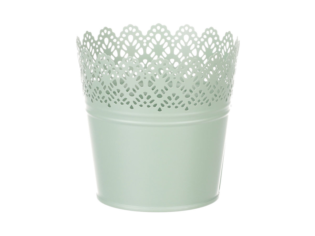 Chcete si udělat radost nevšedním vyzdobením vašeho oblíbeného prostoru květinami, a dochází vám nápady do čeho je vsadit? Zkuste sáhnout po této jedinečné dekoraci v podobě kovového obalu v zeleném dekoru s krajkovým okrajem a nebudete litovat. Díky svému tvaru a vzhledu se tento kovový obal stane okouzlujícím doplňkem pro vaše květiny. Kombinace krásných rostlin zasazených do takto zdobené a tvarované dekorace spolu vytvoří jedinečnou kompozici. Při pohledu na tuto vámi vytvořenou krásu budete na sebe hrdí a mít skvělý pocit z dobře odvedené práce. Přineste si do svého domova prvek originality s tímto nevšedním kovovým obalem na květiny, který okouzlí každého obdivovatele rostlin a skvěle oživí váš prostor.Doplňkové parametry