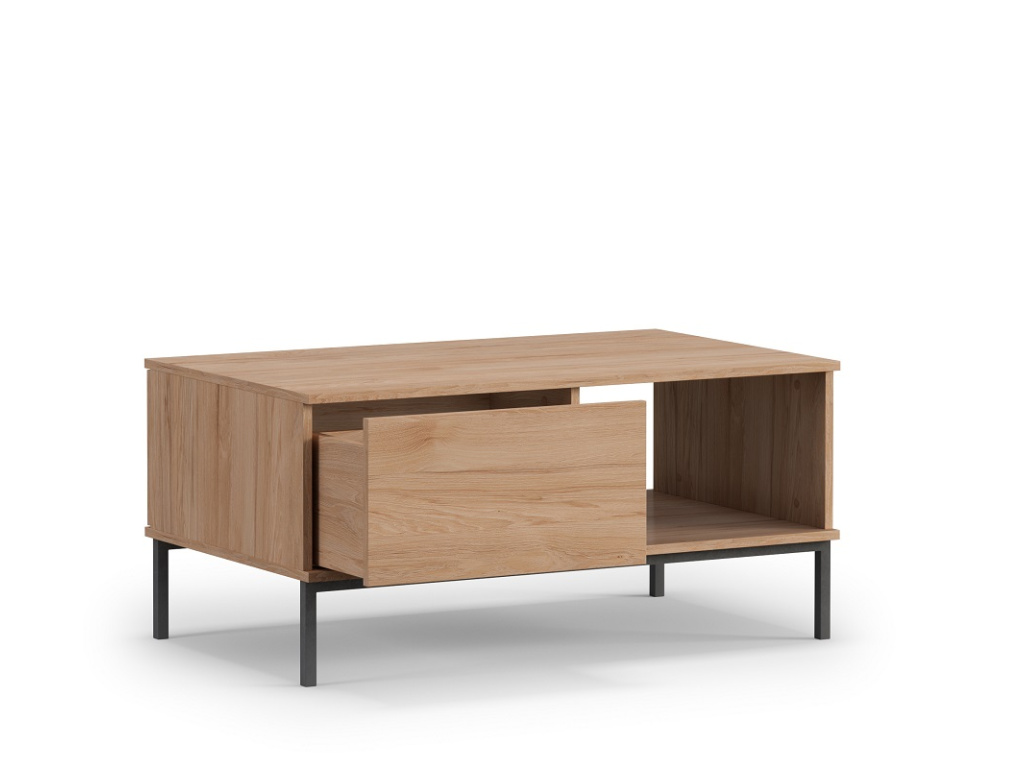 Sestava Querty vás také potěší svými rozměry. Komoda, konferenční stolek, police a vitrína jsou navrženy tak, aby optimalizovaly prostor a zároveň poskytovaly spoustu úložného prostoru. Díky LED osvětlení vystavených prostor získává tento nábytek další rozměr.