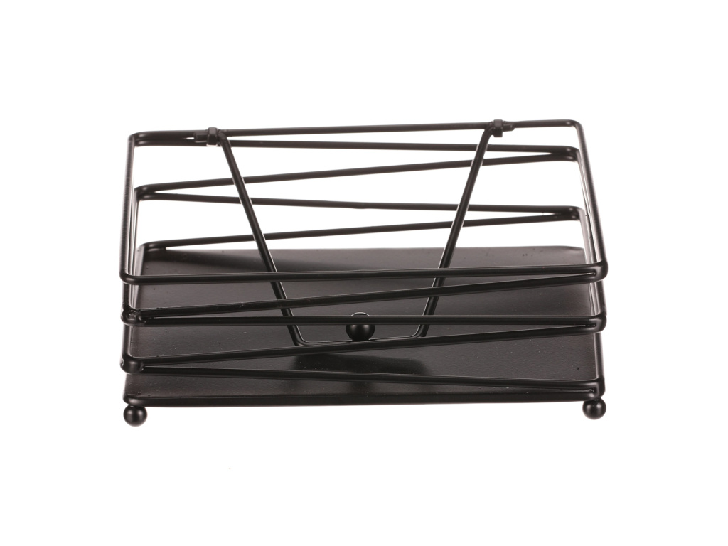 Černý kovový odkladač na ubrousky v čtvercovém provedení zaujme svým elegantním designem s jemnými drátky po stranách. Praktický a stylový doplněk, který se hodí do kuchyně i jídelny. Skvělá volba pro každou domácnost.