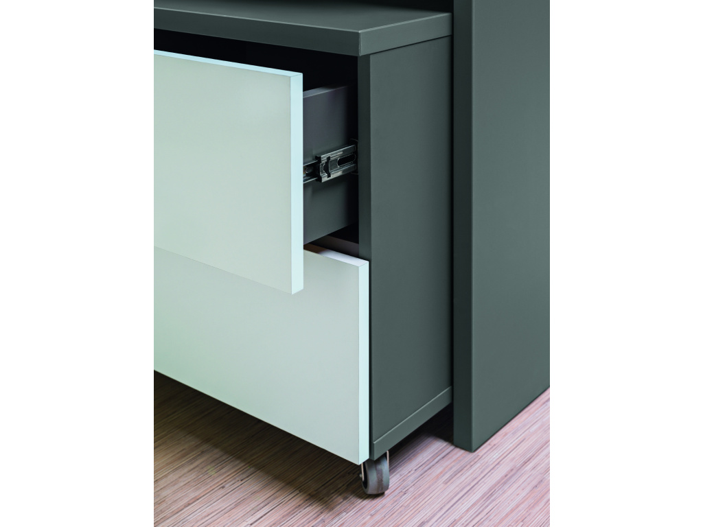 Vytvořená špičkovými designéry a zahraničními techniky, skříň je skvělým příkladem dokonalého propojení funkčnosti a designu, který je charakteristický pro značku Pagani. Upřednostňujeme pevný materiál s laminovaným povrchem pro jeho odolnost a dlouhou životnost. Šedobílá barva dodává této skříni univerzální vzhled, který se snadno hodí do různých interiérů.