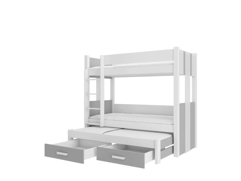 Patrová postel Artema pro 3 osoby je skvělým řešením pro maximální využití prostoru v menším dětském pokoji. Díky praktickým schůdkům a dvěma prostorným zásuvkám na lůžkoviny nabízí nejen pohodlí, ale také funkční úložný prostor. Moderní design a praktické provedení zaručují, že postel Artema bude ideálním doplňkem každého dětského pokoje. Matrace nejsou součástí balení.