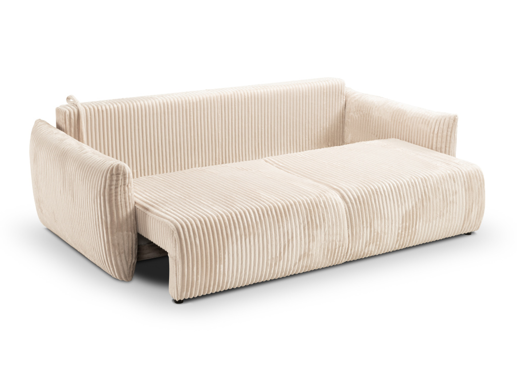 Pohovka Allora je dokonalým spojením elegance, komfortu a funkcionalilty, která se stane hrdým středobodem každého obývacího prostoru. S rozměry 240 x 88 x 108 cm a výškou sedáku 42 cm nabízí pohodlné sezení i ležení na spací ploše 145 x 200 cm, což je ideální pro příležitostné přespání hostů. Funkce spánku typu DL umožňuje snadnou transformaci z pohovky na lůžko, přičemž integrovaná nádoba na lůžkoviny poskytuje praktický úložný prostor pro uskladnění ložního prádla nebo jiných předmětů, čímž udržuje váš obývací pokoj neustále v pořádku.