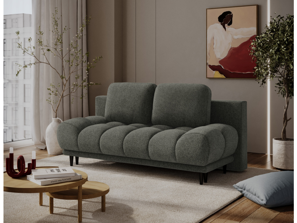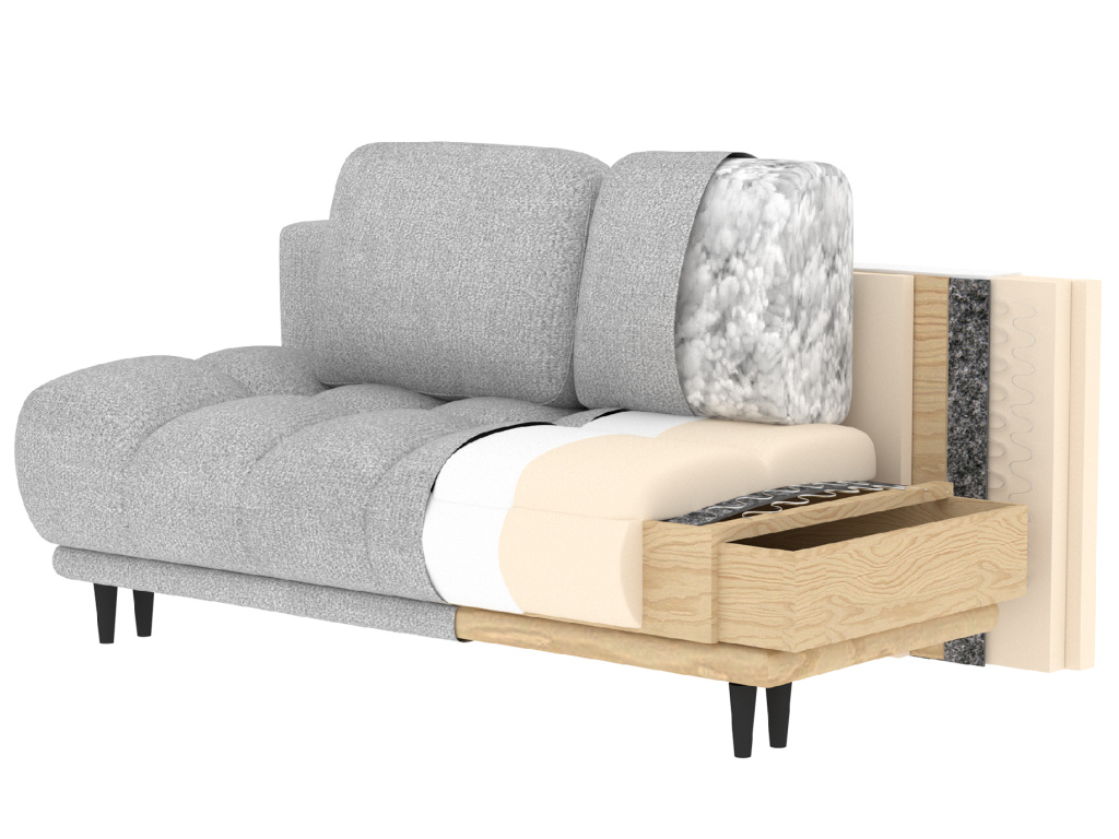 Pohovka Guavio je moderní a funkční kus nábytku určený pro každodenní pohodlí. Její elegantní zaoblené tvary a měkké polštáře dokonale doplňují moderní interiéry. Pohovka má rozměry 210 × 91 × 97 cm a váží 72,6 kg, což zajišťuje stabilní konstrukci. Sedák je vyplněn vlnovcovou pružinou typu B a pěnou HR3030, která zajišťuje pružnost a pohodlí, zatímco opěradlo tvoří polštáře vyplněné pěnovým granulátem, který se přizpůsobí tělu. Pohovka obsahuje funkci spaní s plochou 140 × 210 cm a DL mechanismus s pružinou, který podporuje snadné rozložení na pohodlné lůžko. Dodatečný kontejner na lůžkoviny pomáhá udržovat pořádek. Guavio je dokonalou kombinací designu, praktičnosti a pohodlí, vytvořenou pro moderní interiéry.