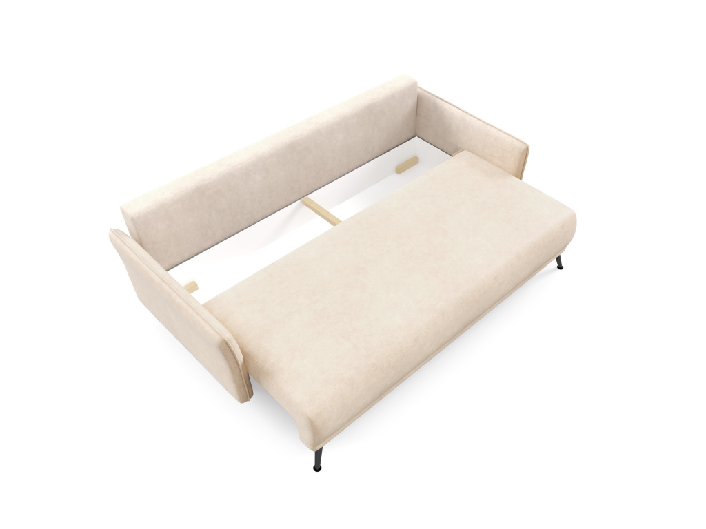 Pohovka Lazio je elegantní a praktický kus nábytku, který se skvěle hodí do moderních interiérů. Díky rozkládacímu systému DL ji snadno proměníte v pohodlné lůžko, a úložný prostor na lůžkoviny nabídne praktické místo pro uložení přikrývek a polštářů. Pohovka je vybavena čtyřmi velkými opěrnými polštáři s ozdobným lemem a dvěma menšími, které zajišťují maximální pohodlí. Lemování područek a industriální kovové nohy zvýrazňují její moderní vzhled a dodávají celému kusu osobitý styl.