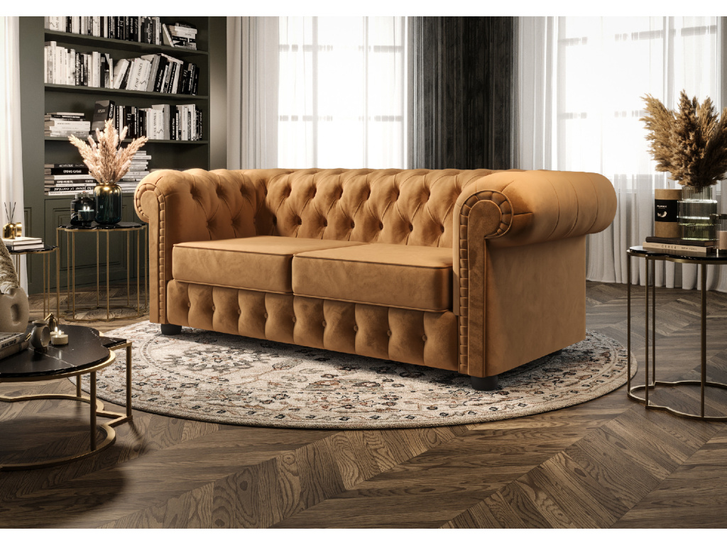 Pohovka Manchester II je ztělesněním stylu, třídy a nadčasové elegance, která okamžitě upoutá svým výrazným hluboce prošívaným opěradlem a zaoblenými područkami ve stejné výšce, čímž vytváří ikonický a luxusní vzhled, jenž pozvedne každý interiér na vyšší úroveň; prémiové materiály jako kvalitní kůže či hebký samet podtrhují její exkluzivní charakter a zároveň zajišťují vysokou odolnost i maximální pohodlí při každodenním používání, díky čemuž se stává ideálním ústředním bodem obývacího pokoje, který spojuje estetiku s funkčností, přičemž možnost volby barev a čalounění umožňuje dokonalé přizpůsobení vašemu stylu, ať už preferujete klasickou eleganci s tmavými tóny nebo moderní hravost s výraznými barvami; pohovka Manchester II navíc skvěle ladí s dřevěnými i kovovými prvky a je dostupná také jako praktická dvoumístná varianta s funkcí spaní, což z ní činí nejen designový, ale i vysoce funkční prvek domácnosti, který představuje dlouhodobou investici do kvality, komfortu a stylu, jenž nikdy nevyjde z módy.