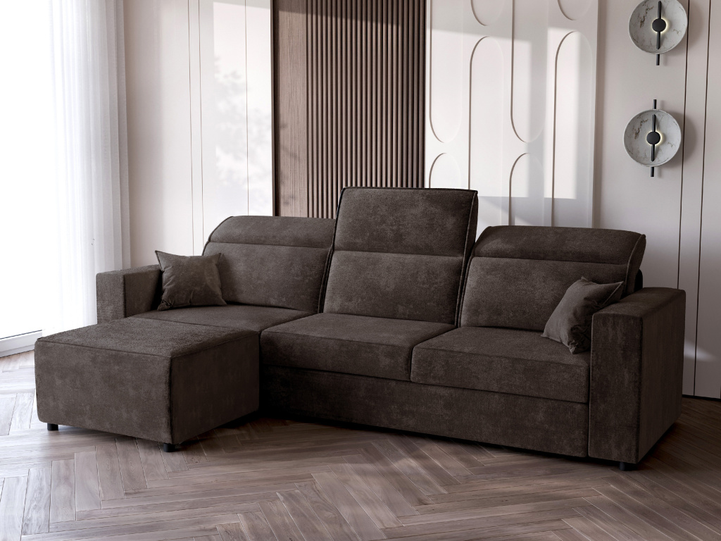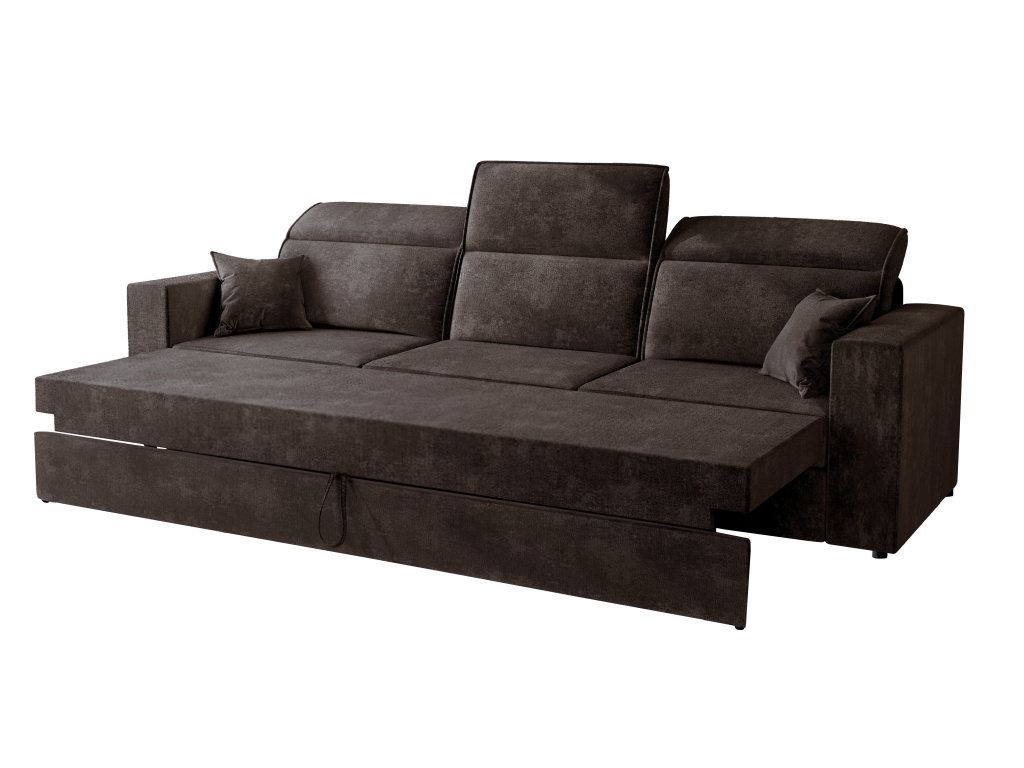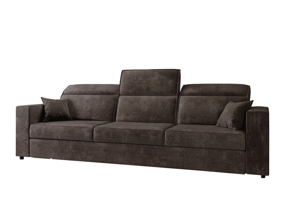 Nová pohovka SANTANA je moderní a praktický kus nábytku, který spojuje elegantní design s maximálním pohodlím a funkčností, pevný dřevěný rám, vlnité pružiny a kvalitní pěna T28 zajišťují dlouhou životnost a komfort při sezení i spaní, zatímco funkce rozkladu vytvoří pohodlnou spací plochu o rozměrech 125 × 207 cm, ideální pro každodenní i příležitostné přespání. Tři nastavitelné opěrky hlavy umožňují individuální nastavení pro dokonalý relax, výška sedu 41 cm a hloubka sedáku 60 cm přispívají k pohodlnému posezení a celkové rozměry pohovky 255 cm na šířku a 105 cm do hloubky skvěle zapadnou do moderního interiéru. Součástí nabídky je také možné doobjednat praktický taburet o velikosti 70 × 70 cm, který lze jednoduše přizpůsobit jako rohové rozšíření pohovky nebo využít jako stylový konferenční stolek, díky čemuž se SANTANA stává flexibilním řešením pro každý obývací prostor.