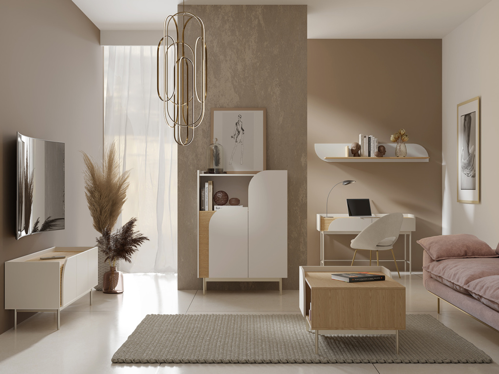 Police Carmen 15 je praktickým prvkem sektorové kolekce Carmen, který nabízí otevřený úložný prostor pro vystavení dekorací, knih nebo dalších drobností. Police je ideální pro doplnění sestavy a přispívá k přehlednému a stylovému uspořádání interiéru. Police je vyrobena z kvalitního lamina s odolnými ABS hranami. Komfort při používání zajišťují panty s tlumeným dovíráním a zásuvky s kuličkovými pojezdy s plným výsuvem. Kolekce Carmen zaujme moderním designem se zaoblenými liniemi a výrazným vroubkovaným detailem na čelních plochách. Nábytek stojí na vyšší kovové podnoži v šedé barvě, která celku dodává lehký a současný vzhled. Kolekce je dostupná ve dvou barevných variantách: Makadamie / Dub a Toffie / Dub.