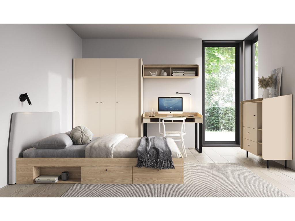 Moderní postel Alessio s lehací plochou 120 x 200 cm představuje skvělou volbu do dětských a studentských pokojů. Díky šířce 120 cm poskytuje dostatek prostoru nejen pro menší děti, ale i pro starší studenty. Vyšší čelo zajišťuje pohodlí při čtení a sezení, zatímco dvě praktické zásuvky a otevřená police nabízejí dostatek úložného prostoru pro lůžkoviny, knihy nebo hračky. Úložné prvky lze navíc umístit na pravou nebo levou stranu, takže se postel snadno přizpůsobí dispozicím místnosti.