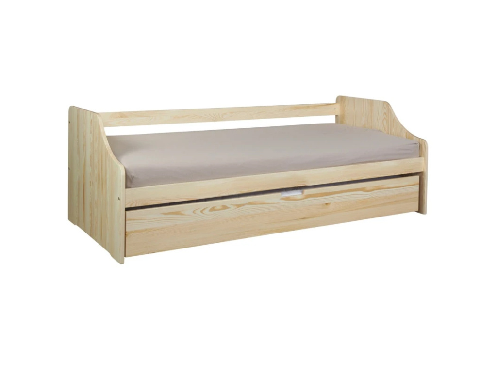 Spací plocha na horním lůžku má rozměry 90x200 cm, zatímco spodní plocha na spaní má rozměry 80x190 cm. Součástí sady je postel se šuplíkem a rolovací rošt pro spodní spací plochu, přičemž matrace a rošt lze dokoupit samostatně v sekci Matrace a rošty. Postel je vyrobena z přírodního a ekologického borovicového dřeva, které je ošetřeno schválenými ekologickými mořidly nebo laky. Konstrukce stojí na masivních dřevěných nohách a nabízí možnost dvojitého spaní. Borovicové dřevo je zdravé pro vaše tělo, odolné proti poškození a snadno se udržuje.