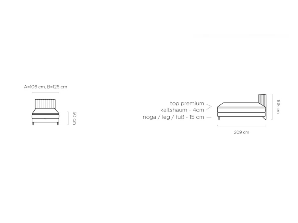 Postel je vybavena bonellovou matrací s vrchní vrstvou z pěny Basic Comfortschäum o tloušťce 4 cm, což zaručuje vysoký komfort spánku. S rozměry 209 x 126 cm a výškou čela 105 cm se postel Nepo stane dominantním prvkem každé ložnice, aniž by zabírala příliš mnoho prostoru.