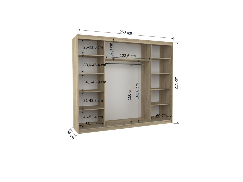 Posuvná skříň se zrcadlem CAMBE 250 SW-CAM-S+W-250+L-V391