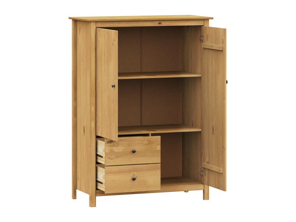 Prádelník TORINO je elegantní kus nábytku z masivní borovice, který zaujme svým přírodním vzhledem a poctivým zpracováním. Povrch je ošetřen kvalitním voskem v medovém odstínu, jenž zvýrazňuje kresbu dřeva a dodává mu hřejivý charakter. Prádelník nabízí dvoje dvířka a dvě prostorné zásuvky s kovovými pojezdy, které zajišťují plynulé a tiché otevírání. Stylové kovové úchytky v provedení černěná mosaz podtrhují rustikální eleganci celé kolekce. Tento nábytek spojuje praktičnost, odolnost a nadčasový design, díky čemuž se stane ozdobou i užitečným pomocníkem ve vašem interiéru.