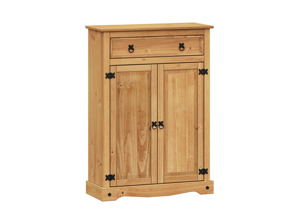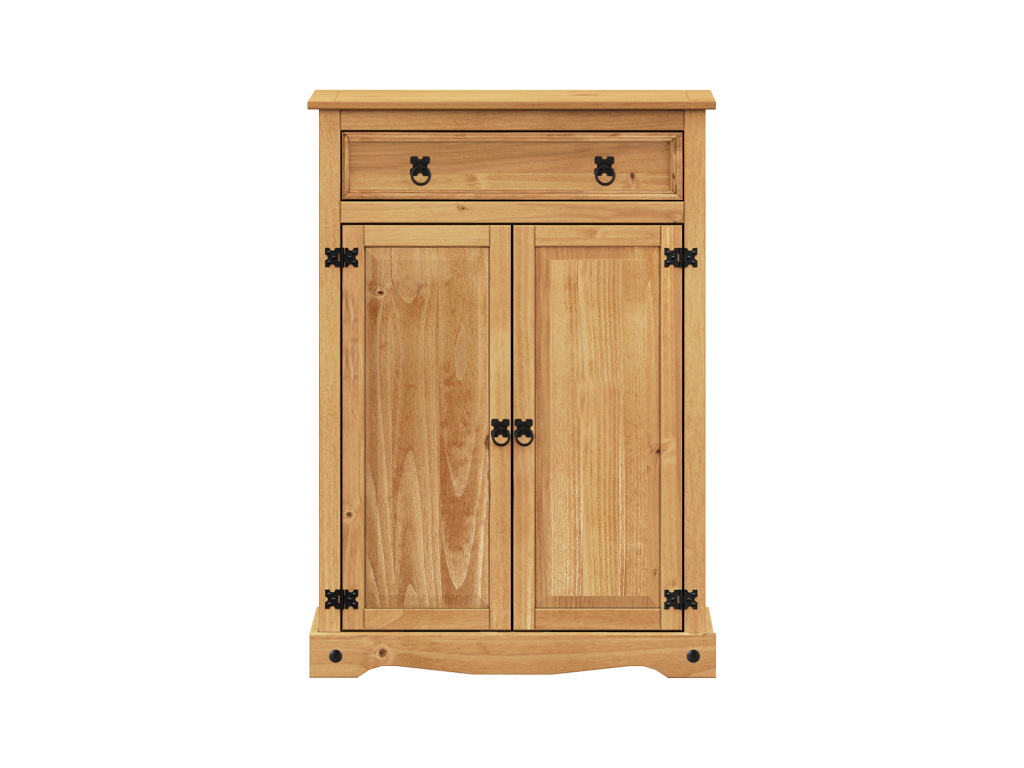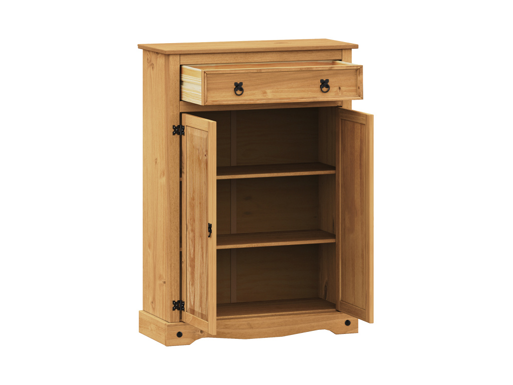 Prádelník CORONA vyniká poctivým zpracováním z masivní borovice a hřejivým vzhledem díky kvalitnímu voskování v medovém odstínu, které zvýrazňuje přirozenou kresbu dřeva. Nábytek nabízí jednu prostornou zásuvku a dvoje dvířka ukrývající dvě variabilní police, které umožňují přehledné uložení prádla či domácích potřeb. Stylové kovové ozdobné úchytky dodávají prádelníku typický rustikální charakter a doplňují jeho jedinečný design. Tento kus je součástí oblíbené sestavy CORONA, která spojuje funkčnost, přírodní krásu a trvanlivost do každého interiéru.