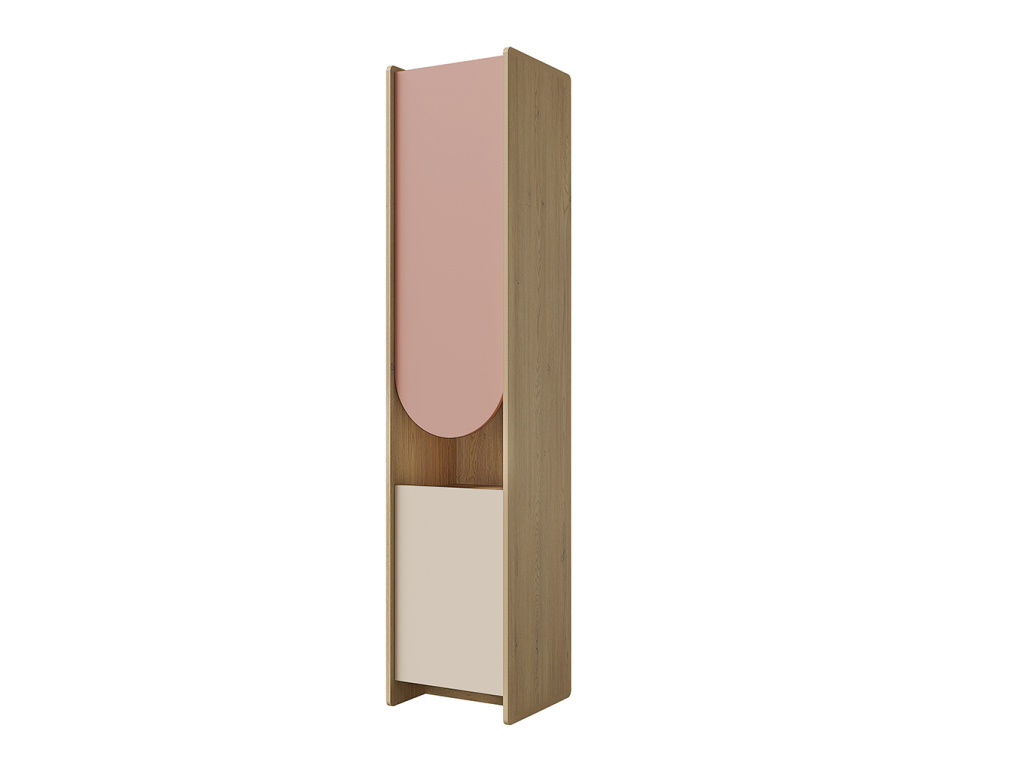 Regál LEXI 4 nabízí praktický úložný prostor, který se hodí na knihy, hračky i dekorace do dětského pokoje. Otevřená police poskytuje místo pro věci, které chcete mít stále po ruce, zatímco části s dvířky umožňují uložit další potřeby přehledně a mimo dohled. Regál je dostupný v levém i pravém provedení, takže jej lze snadno přizpůsobit uspořádání pokoje i ostatním prvkům sestavy. Barevný detail na dvířkách dodává nábytku hravý charakter a příjemně oživuje celý design. Design regálu zaujme kombinací dekoru dub Cremona a odstínu makadamie doplněnou o barevný prvek v pudrově růžové nebo mořské modré, který přináší do interiéru jemný a moderní akcent. Regál je součástí sektorového systému LEXI, který nabízí řadu modulů umožňujících sestavit dětský pokoj přesně podle vašich potřeb a prostoru.