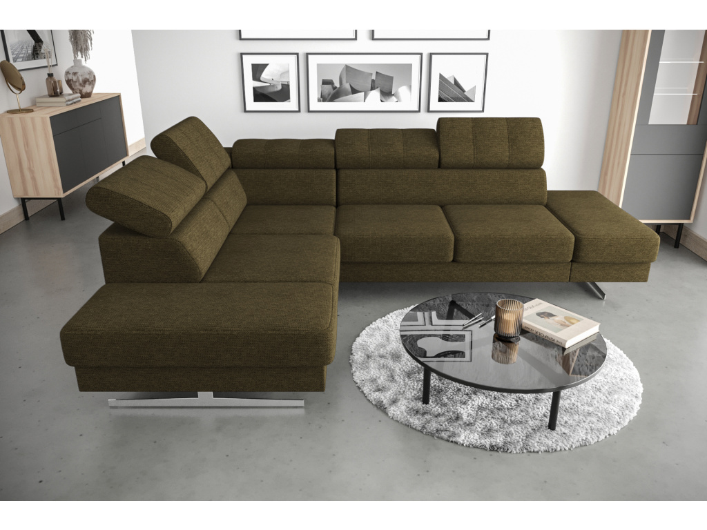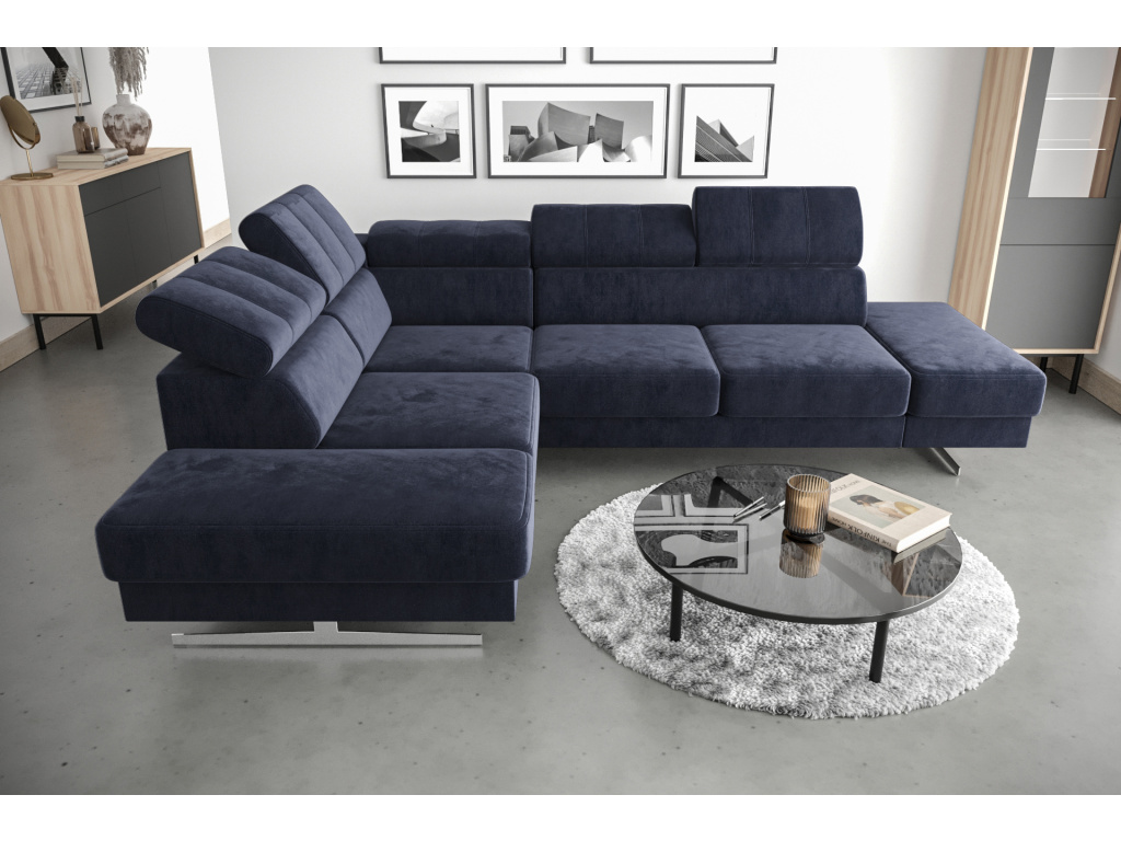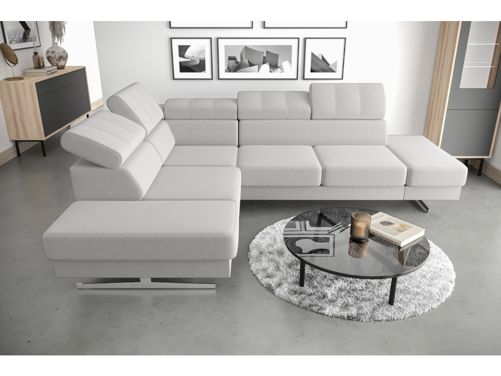 Rohová pohovka Emporio 225×300 je ideální volbou pro ty, kteří hledají spojení moderní elegance, komfortu a precizního zpracování, přičemž vychází z oblíbeného modelu Royal v odlehčeném designu s vysokými nohami, které interiéru dodávají vzdušnost a styl; nastavitelné opěrky hlavy zajistí maximální pohodlí přesně podle vašich potřeb, zatímco 16 cm vysoké dekorativní nohy ve stříbrném nebo černém provedení podtrhují luxusní vzhled a dodávají pohovce jedinečný charakter. Každý detail je promyšlený – výrazné prošívání nejen esteticky zaujme, ale zároveň zpevňuje jednotlivé části, sedáky kombinující vlnité pružiny a vysoce elastické pěny T35 a HR poskytují ideální rovnováhu mezi měkkostí a odolností, takže si můžete užívat pohodlí každý den bez kompromisů. Pevná konstrukce z kvalitního dřeva a dřevotřísky zaručuje stabilitu a dlouhou životnost, díky čemuž se tato pohovka stává spolehlivou investicí do vašeho domova. Velkou výhodou je také možnost individuálního přizpůsobení díky široké nabídce potahových látek – od elegantního sametu přes praktickou umělou kůži až po odolný žinylk – všechny materiály jsou pečlivě vybrané, opatřené ochrannými vrstvami proti tekutinám, snadno se čistí a jsou vhodné i pro domácnosti s mazlíčky, takže si můžete vytvořit pohovku přesně podle svého stylu i životního rytmu.