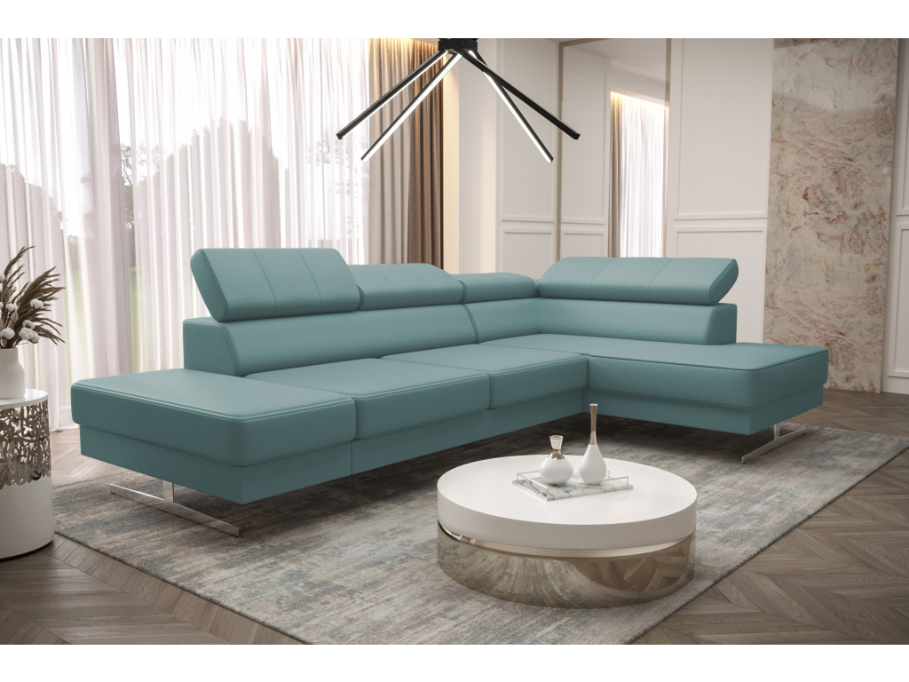Rohová pohovka Emporio Mini o rozměrech 300 × 180 cm je ideální volbou pro ty, kteří hledají dokonalou rovnováhu mezi moderním designem, prostorností a každodenním komfortem; tento vylepšený model inspirovaný řadou Royal zaujme elegantními 16cm vysokými nohami v černém nebo stříbrném provedení, které dodávají pohovce lehkost a stylovou nonšalanci, zatímco nastavitelné opěrky hlavy umožňují individuální nastavení pro maximální pohodlí při odpočinku i společných chvílích; precizní zpracování podtrhuje výrazné dekorativní prošívání, které nejen skvěle vypadá, ale zároveň zpevňuje konstrukci, a o komfort se stará kombinace vlnitých pružin a vysoce elastických pěn T35 a HR, díky nimž jsou sedáky příjemně středně měkké, odolné a dlouhodobě si zachovávají svůj tvar; pevná konstrukce z kvalitního dřeva a dřevotřísky zajišťuje stabilitu a dlouhou životnost, zatímco široká nabídka potahových materiálů – od luxusního sametu přes praktickou umělou kůži až po odolnou žinylku – vám umožní vytvořit pohovku přesně podle vašeho stylu; všechny látky jsou navíc opatřeny speciálními úpravami proti tekutinám, snadno se čistí a jsou vhodné i pro domácnosti s mazlíčky, takže Emporio Mini spojuje atraktivní vzhled s maximální praktičností pro moderní život.