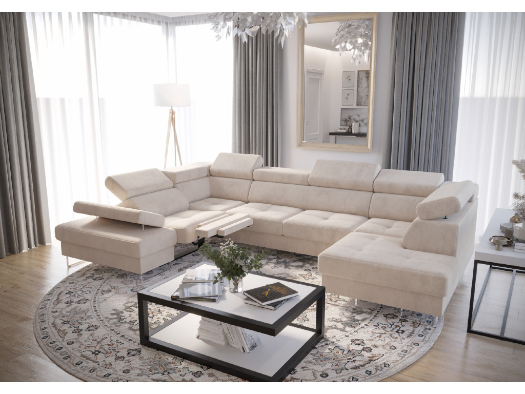 Rohová pohovka Galaxy Max II Relax s funkcí spaní o rozměrech 210 × 350 × 165 cm je dokonalou kombinací moderní elegance, nadčasového designu a maximálního pohodlí, která zaujme každého milovníka stylového a praktického nábytku, její čisté linie s jemným dekorativním prošíváním dodávají pohovce prémiový vzhled, automatická funkce delfínového spánku umožňuje rychle proměnit pohovku v pohodlné lůžko pro hosty, praktická přihrádka na ložní prádlo poskytuje další úložný prostor, funkce RELAX posouvá relaxaci na novou úroveň – umožňuje nastavit více poloh tak, aby vyhovovaly vašim individuálním potřebám, ať už chcete sledovat televizi, číst nebo si odpočinout po náročném dni, pohodlí zajišťují nastavitelné opěrky hlavy a polohovatelná loketní opěrka, konstrukce z masivního dřeva a dřevotřísky garantuje pevnost a dlouhou životnost, sedáky tvořené kombinací vlnitých pružin a vysoce elastických pěn T35 a HR poskytují optimální rovnováhu mezi měkkostí a odolností, široký výběr látek včetně sametu, žinylky či umělé kůže s ochrannými úpravami proti polití a snadným čištěním umožňuje pohovku dokonale přizpůsobit vašemu stylu a potřebám, Galaxy Max II Relax je tak ideální volbou pro každého, kdo hledá prostornou, stylovou a vysoce funkční pohovku, která zaručí luxusní pohodlí, praktické využití a reprezentativní vzhled vašeho domova.
