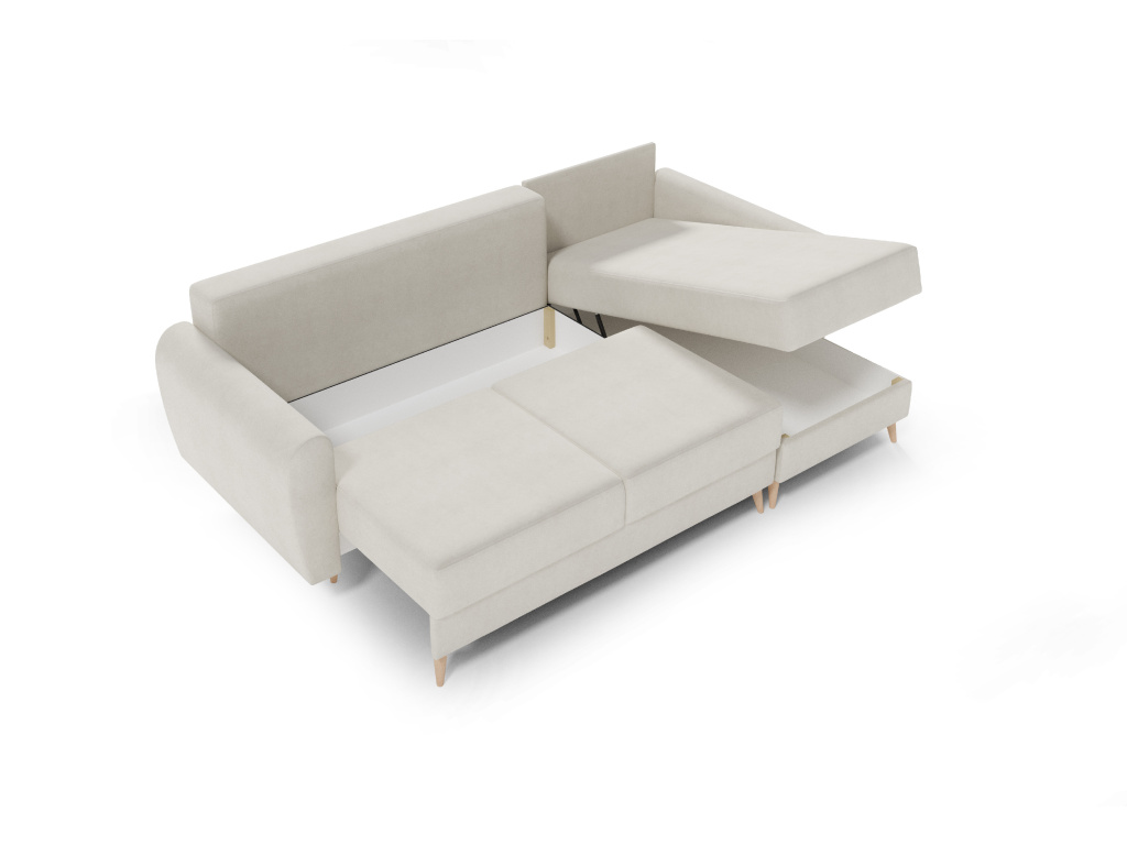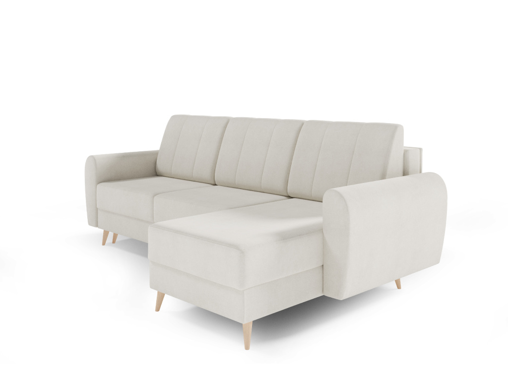Rohová pohovka Modena I zaujme jemnou plyšovou látkou, která nejen působí elegantně, ale zároveň zajišťuje výjimečně měkký a pohodlný povrch pro každodenní relaxaci. Díky praktickému rozkládacímu systému DL ji snadno proměníte v pohodlné lůžko. Tři velké opěrné polštáře poskytují dodatečné pohodlí při sezení i ležení. Nechybí ani úložný prostor na lůžkoviny, který zvyšuje funkčnost pohovky. Stylový vzhled dotvářejí dřevěné nohy, které dodávají celku elegantní a teplý nádech.