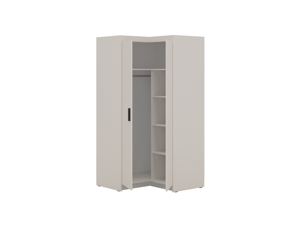 Rohová šatní skříň Elena je ideálním řešením pro efektivní využití rohového prostoru ve vašem domově. S rozměry 978 x 1905 x 978 mm (š x v x h) poskytuje dostatek úložného prostoru pro vaše oblečení a další věci. Skříň je balena ve 3 baleních, což usnadňuje manipulaci a montáž. Přední strana skříně je vyrobena z 15 mm laminované desky v dekoru dub lefkas a má melaminovou hranu. Rukojeť je plastová, matná stříbrná, s délkou 128 mm, což dodává skříni moderní a elegantní vzhled. Korpus skříně je také zhotoven z kvalitní laminátové desky o tloušťce 15 mm v dekoru dub lefkas s melaminovým lemováním hran. Interiér šatní skříně je rovněž v barvě dub lefkas což zajišťuje jednotný a stylový vzhled celého nábytku. Rohová šatní skříň Elena je skvělým doplňkem pro každý interiér, který kombinuje praktičnost s elegantním designem.Doplňkové parametry