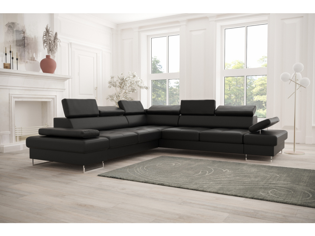 Rohová sedací souprava GALAXY MAX s funkcí spaní 280×280 z pravé kůže představuje dokonalou kombinaci luxusu, moderního designu a maximálního pohodlí, která promění váš obývací prostor v místo skutečného odpočinku. Elegantní nadčasové linie doplněné precizním prošíváním podtrhují exkluzivní vzhled, zatímco kvalitní pravá kůže dodává nábytku nejen jedinečný charakter, ale i dlouhou životnost a snadnou údržbu. Díky praktické funkci spaní s mechanismem delfín během okamžiku vytvoříte komfortní lůžko pro hosty a integrovaný úložný prostor z laminované desky zajistí dostatek místa pro lůžkoviny. Nastavitelné opěrky hlavy a polohovatelná loketní opěrka vám umožní přizpůsobit si posezení přesně podle vašich potřeb, ať už relaxujete u televize nebo odpočíváte po náročném dni. Na výběr máte elegantní kovové nohy ve stříbrném nebo černém provedení, které dokonale doplní váš interiér. Sedáky s vlnitými pružinami a kombinací vysoce elastických pěn T35 a HR zaručují ideální rovnováhu mezi měkkostí a oporou, zatímco pevná konstrukce ze dřeva a nábytkové desky garantuje stabilitu a dlouhodobou odolnost. Každý detail je zpracován s maximální pečlivostí a celá sedací souprava je čalouněna prvotřídní přírodní kůží včetně boků a zadní části, což z ní činí skutečně prémiový kousek pro náročné zákazníky, kteří hledají styl, kvalitu a funkčnost bez kompromisů.