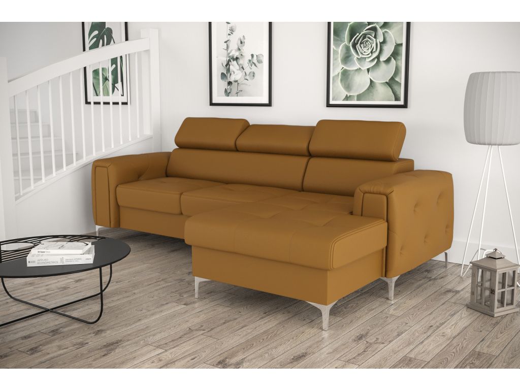 Rohová sedací souprava ORION MINI s funkcí spaní o rozměrech 255 × 165 cm v provedení z pravé kůže představuje dokonalou kombinaci luxusního vzhledu, kompaktních rozměrů a maximálního komfortu, která skvěle zapadne do menších i moderních obývacích prostor, na první pohled zaujme elegantní prošívanou bočnicí a precizním dekorativním prošitím, jež dodávají celé pohovce jedinečný a sofistikovaný charakter, díky automatické delfínové funkci ji snadno a rychle proměníte na pohodlné lůžko pro hosty, zatímco praktický úložný prostor z odolné laminované desky nabízí dostatek místa pro ložní prádlo, nastavitelné opěrky hlavy umožňují individuální nastavení pro maximální pohodlí při odpočinku, vysoké 13 cm kovové nohy ve stříbrném nebo černém provedení podtrhují moderní design a zároveň usnadňují úklid i s robotickým vysavačem, kvalitní konstrukce ze dřeva a nábytkové desky spolu se sedáky tvořenými klikatými pružinami a vysoce pružnou pěnou T35 a HR zajišťuje ideální rovnováhu mezi měkkostí, oporou a dlouhou životností, použití výhradně celozrnné přírodní kůže včetně boků a opěradla garantuje prémiovou kvalitu, odolnost a autentický luxus bez kompromisů, díky čemuž je ORION MINI perfektní volbou pro všechny, kteří hledají stylovou, praktickou a nadčasově elegantní rohovou sedací soupravu s důrazem na detail i každodenní pohodlí.