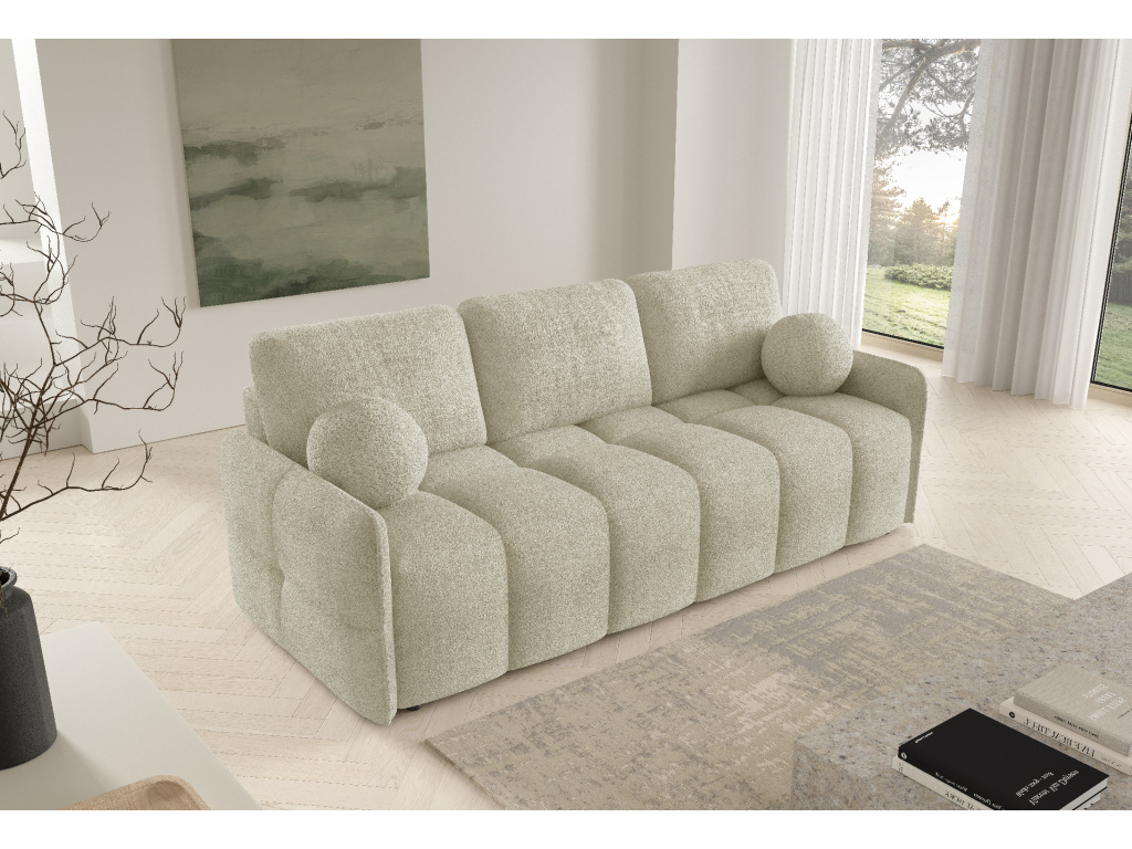 Rozkládací pohovka Emilie je ideální volbou pro každého, kdo hledá styl, pohodlí a praktičnost v jednom. Díky šířce 212 cm nabízí velkorysý prostor k sezení s pohodlnou šířkou sedáku 195 cm, výškou sedu 40 cm a hlubokým sedákem až 72 cm, který zajišťuje maximální komfort při odpočinku. Pohovka je vybavena praktickou funkcí rozkládání MOS, díky které ji během chvilky proměníte na prostorné lůžko o velikosti 194 × 140 cm vhodné pro každodenní i příležitostné spaní. Konstrukce z kvalitní dřevotřísky, MDF a borovicového dřeva zaručuje pevnost a dlouhou životnost, zatímco sedák i opěradlo s vlnitými pružinami a pěnou VP2830 poskytují výbornou oporu a pohodlí. Měkké polštáře plněné granulátem mají praktické zipy pro snadnou údržbu a pohovka je navíc čalouněná i ze zadní strany, takže ji můžete umístit volně do prostoru. Součástí je také prostorný úložný box na ložní prádlo o rozměru 190 × 62 × 24,2 cm, který pomůže udržet váš domov dokonale organizovaný. Stabilitu zajišťují nenápadné plastové nožky o výšce 2,5 cm a celý výrobek je bezpečně zabalen v kartonu a ochranné HDPE fólii. Emilie je perfektní kombinací moderního designu, funkčnosti a pohodlí, která se stane srdcem každého obývacího pokoje.