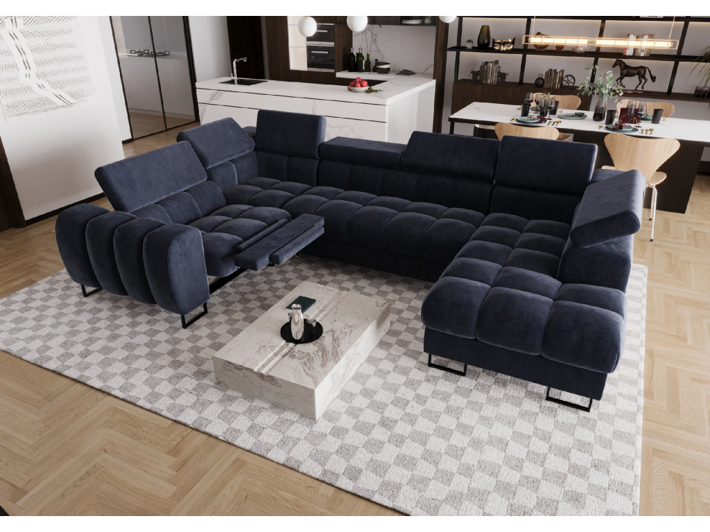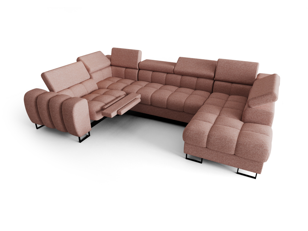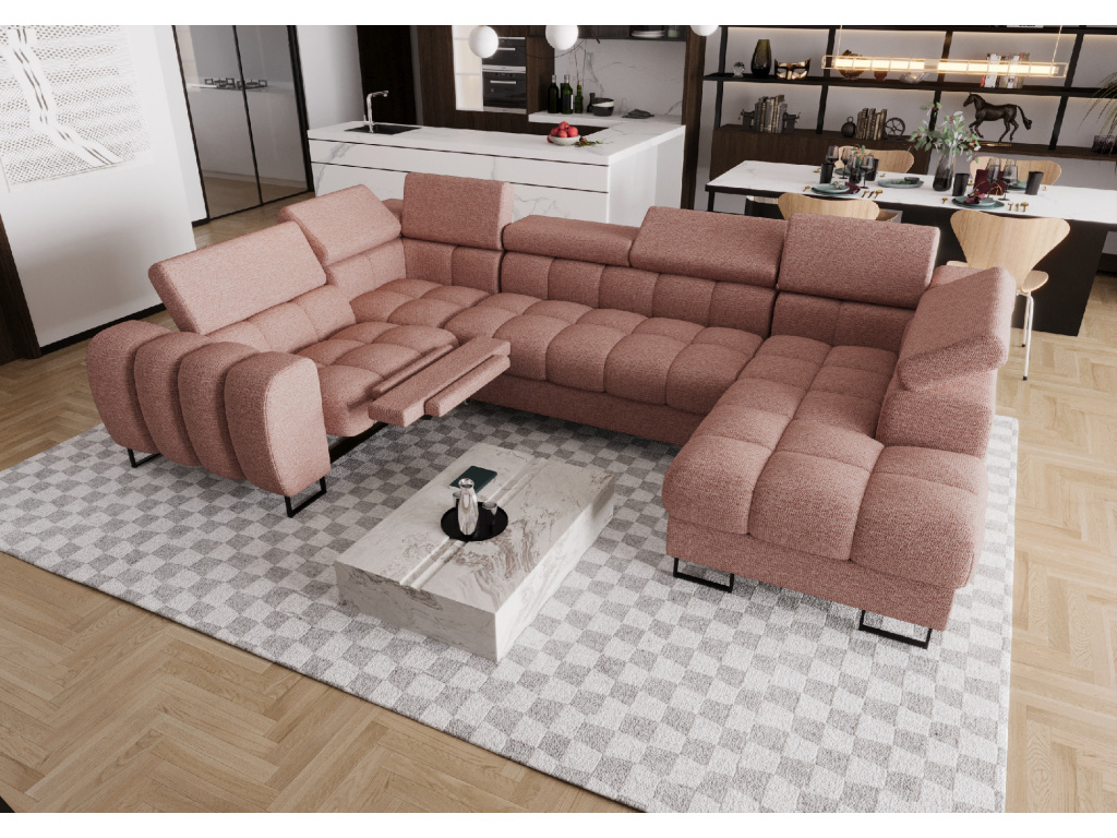 Rozkládací rohová pohovka Aspen Max II Relax ve tvaru U o rozměrech 198 × 350 × 170 cm je ideální volbou pro ty, kteří chtějí spojit luxusní pohodlí, moderní design a praktické funkce v jednom výjimečném kusu nábytku. Tento prostorný model se stane dominantou každého obývacího pokoje a nabídne dostatek místa pro odpočinek celé rodiny i příjemná setkání s přáteli. Během dne slouží jako velkorysá a pohodlná pohovka, zatímco večer ji lze snadno rozložit a vytvořit praktické lůžko pro příležitostné přespání hostů. Maximální komfort zajišťují nastavitelné opěrky hlavy, díky nimž si každý může přizpůsobit ideální polohu pro relaxaci, sledování televize nebo čtení. Jedinečnou výhodou tohoto modelu je také relaxační funkce RELAX, která posouvá odpočinek na zcela novou úroveň – díky vícestupňovému nastavení si můžete jednoduše zvolit svou oblíbenou polohu a dopřát si dokonalé uvolnění po náročném dni. Praktickým prvkem je také prostorná přihrádka na ložní prádlo, která pomáhá udržet interiér přehledný a organizovaný. Charakteristický design inspirovaný tvarem čokoládové tyčinky dodává pohovce Aspen Max II Relax originální a moderní vzhled, který zaujme na první pohled a vnese do interiéru nádech elegance. Vysoké nohy ve stříbrném nebo černém provedení podtrhují stylový charakter pohovky a zároveň usnadňují úklid pod nábytkem. Díky široké nabídce kvalitních čalounických látek v různých barvách a strukturách si můžete vzhled pohovky přizpůsobit přesně podle stylu svého domova, přičemž všechny materiály jsou pečlivě vybírány tak, aby byly odolné, snadno se čistily, chránily před politím a byly vhodné i do domácností s domácími mazlíčky. Aspen Max II Relax je perfektní volbou pro ty, kteří chtějí ve svém obývacím pokoji vytvořit stylové a pohodlné místo pro skutečný odpočinek.