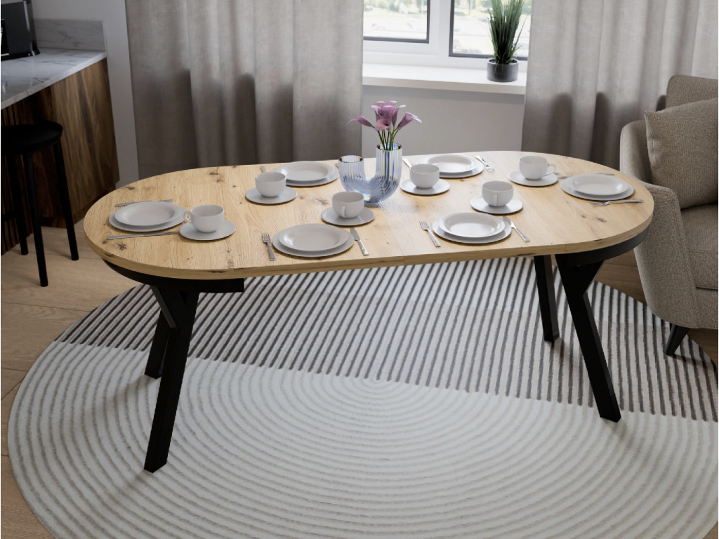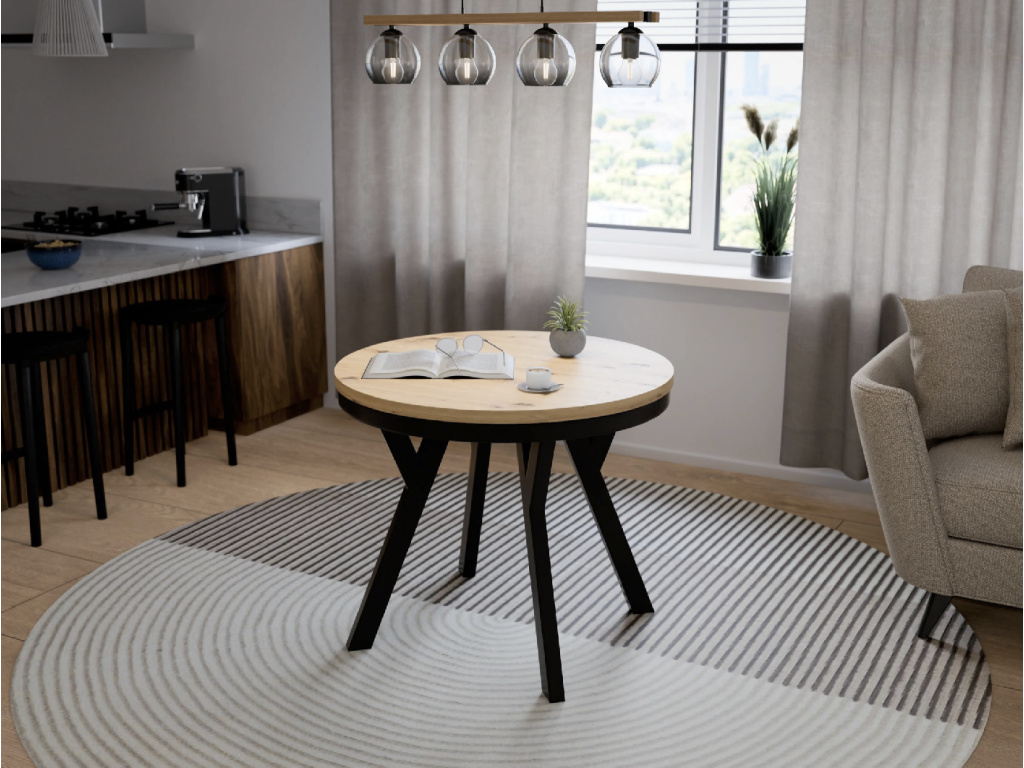 Rozkládací stůl DAX o průměru 90 cm je perfektní volbou do menších i větších jídelen, kde oceníte jeho chytré a praktické řešení, v základním rozměru 90 × 90 × 76,2 cm nabízí kompaktní prostor pro každodenní stolování, během okamžiku jej však snadno rozložíte na 140 cm nebo až 190 cm délky při zachování hloubky 90 cm, takže pohodlně usadíte rodinu i hosty, stabilní konstrukce a nadčasový design z něj dělají stylový a zároveň funkční kus nábytku, který se přizpůsobí vašim potřebám a dodá interiéru moderní a elegantní vzhled.