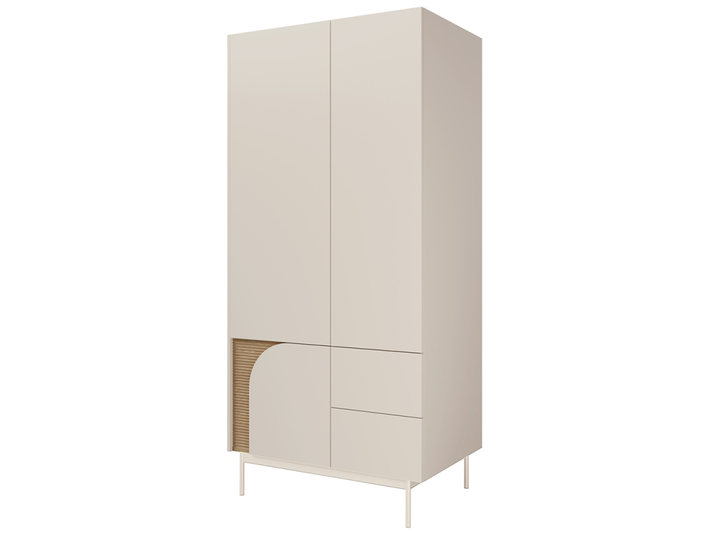 Šatní skříň Carmen 1 je praktickým a elegantním prvkem sektorové kolekce Carmen, který nabízí dostatek prostoru pro přehledné uložení oblečení. Dvoudveřová skříň je vybavena policemi, šatní tyčí a zásuvkami, takže umožňuje snadnou organizaci šatníku. Skříň je vyrobena z kvalitního lamina s odolnými ABS hranami. Komfort při používání zajišťují panty s tlumeným dovíráním a zásuvky s kuličkovými pojezdy s plným výsuvem. Kolekce Carmen zaujme moderním designem se zaoblenými liniemi a výrazným vroubkovaným detailem na čelních plochách. Nábytek stojí na vyšší kovové podnoži v šedé barvě, která celku dodává lehký a současný vzhled. Kolekce je dostupná ve dvou barevných variantách: Makadamie / Dub a Toffie / Dub.