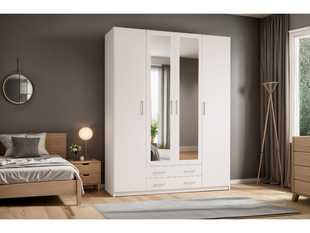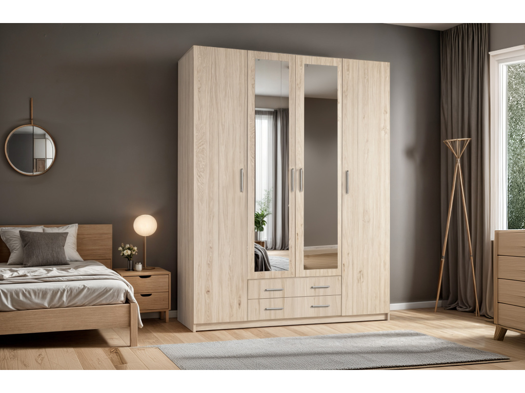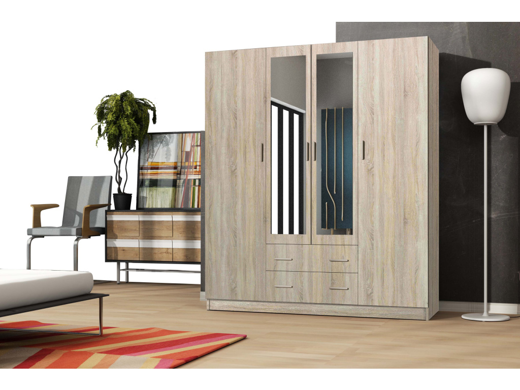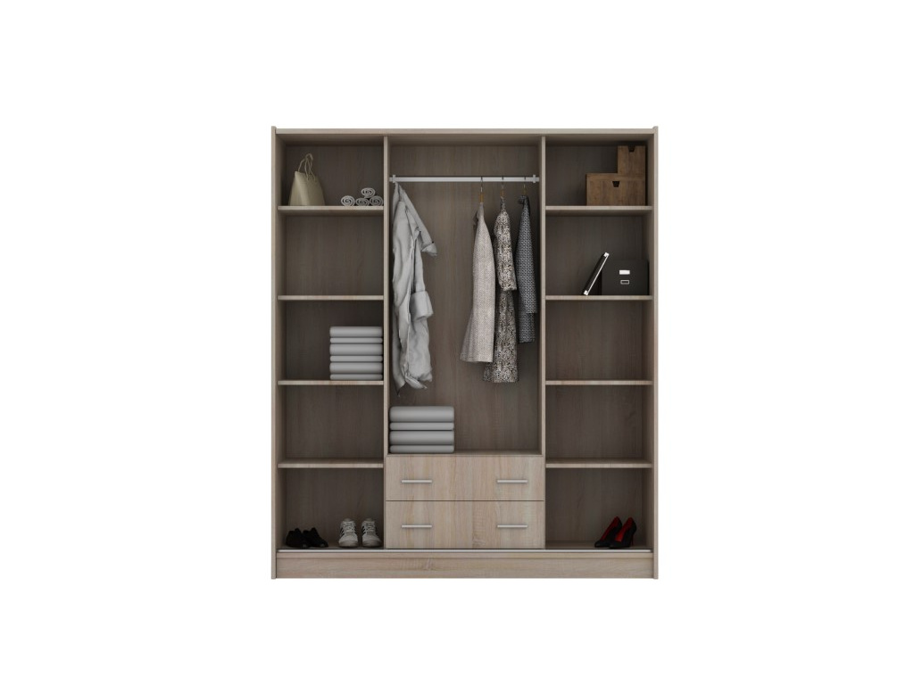 Šatní skříň PENELOPA v nadčasovém provedení Dub Sonoma nebo v elegantní bílé barvě je praktickým a stylovým řešením pro každou ložnici, integrované zrcadlo opticky zvětšuje prostor a zvyšuje komfort při každodenním používání, zatímco dva prostorné šuplíky poskytují přehledné místo pro uložení drobností a doplňků.