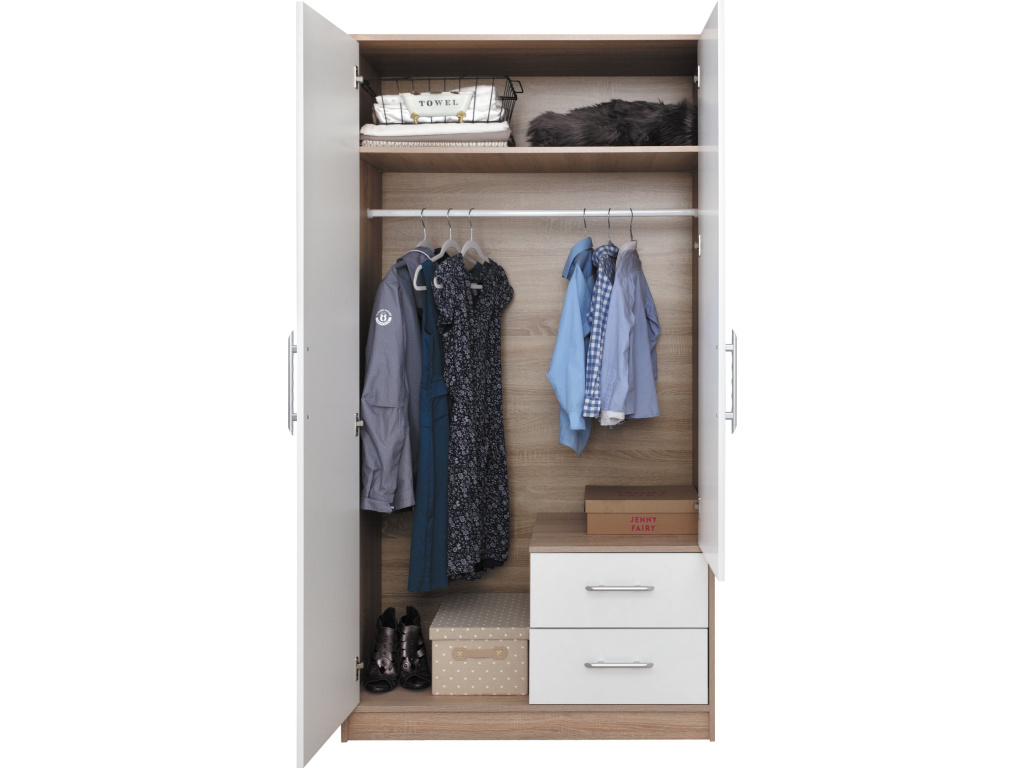 Naše šatní skříň se zrcadlem, SMART SRL3, není jen obyčejným kusem nábytku. Jedná se o dokonalou kombinaci funkčnosti a elegantního designu. Skříň je součástí našeho skříňového systému SMART, který je navržen tak, aby vám nabídl co nejvíce úložného prostoru bez kompromisů v oblasti estetiky. Skříň je vyrobena z kvalitních materiálů v barevném provedení dub sonoma a bílý lux, které se snadno hodí do jakéhokoliv interiéru.