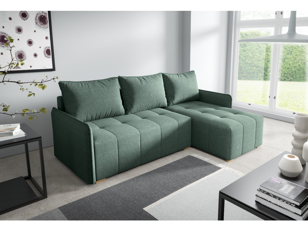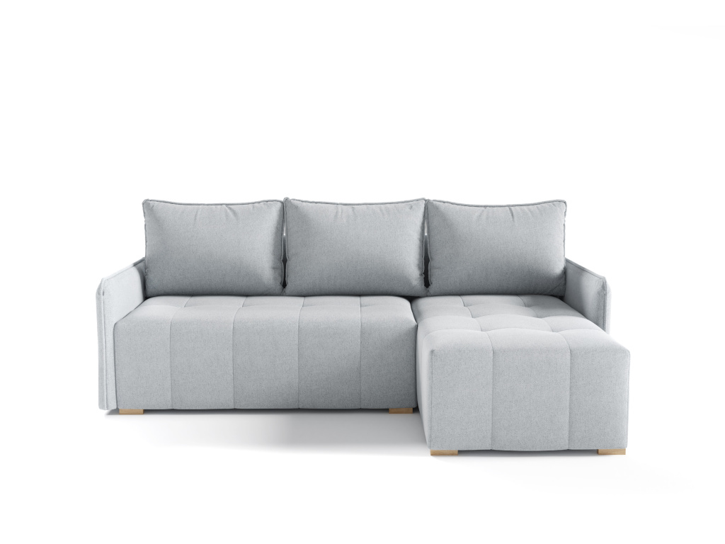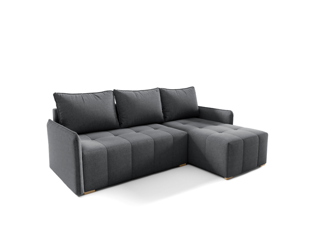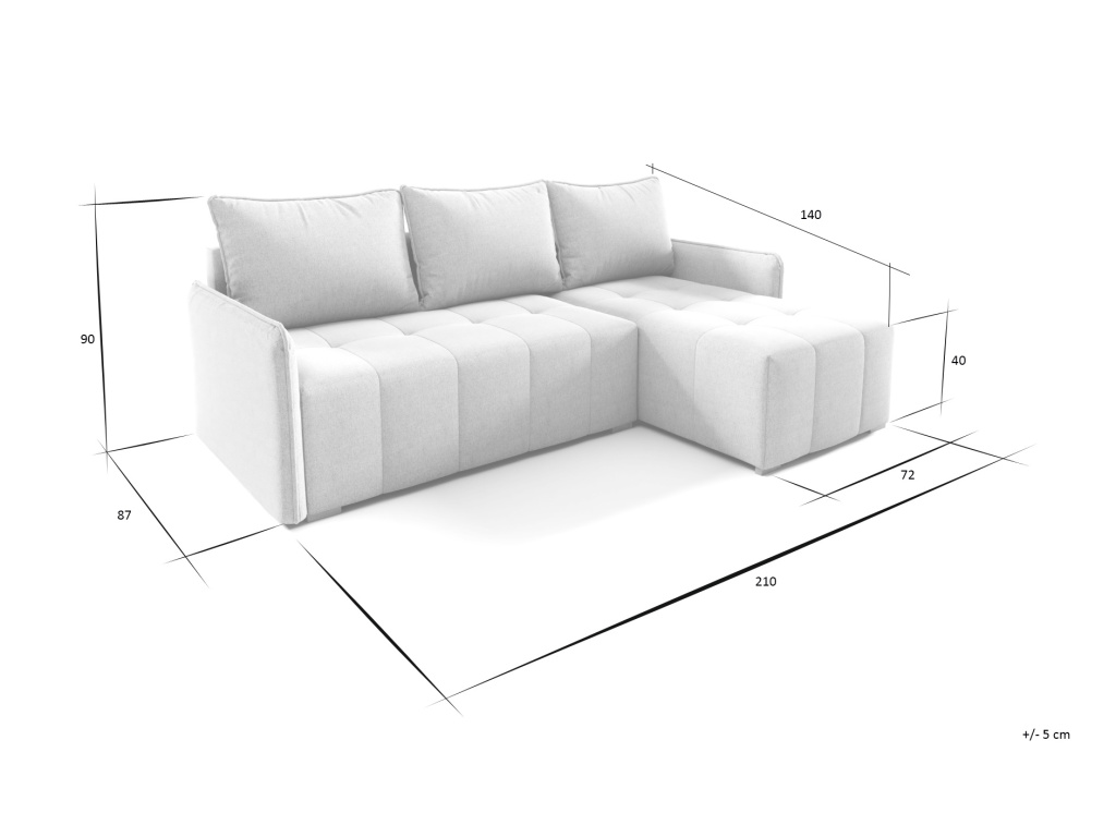 Rohová sedací souprava Grenada je moderní a praktická pohovka, která nabízí ideální spojení pohodlí, funkčnosti a stylového designu, díky kompaktním rozměrům 210 × 140 × 90 cm se skvěle hodí i do menších obývacích pokojů a přesto poskytuje prostorný sedák o šířce 198 cm, výšce 40 cm a hloubce 72 cm pro komfortní každodenní sezení, měkké opěrné polštáře plněné granulátem jsou vybaveny zipy pro snadnou údržbu a zajišťují příjemnou oporu zad, kvalitní výplň z pěny T2528 v kombinaci s vlnitými pružinami v sedáku i opěradle zajišťuje pohodlí a dlouhou životnost, souprava je vybavena praktickou rozkládací funkcí MOS, díky které snadno vytvoříte lůžko o velikosti 198 × 126 cm vhodné pro příležitostné spaní, nechybí ani úložný prostor na lůžkoviny o rozměru 126 × 62 × 24,2 cm, pevná konstrukce z dřevotřísky, MDF a borovicového dřeva zajišťuje stabilitu a odolnost, čalouněná zadní strana umožňuje umístit pohovku i do prostoru a dřevěné nohy dodávají celé soupravě přirozený a elegantní vzhled, díky čemuž je sedací souprava Grenada skvělou volbou pro pohodlný a stylově zařízený obývací pokoj.