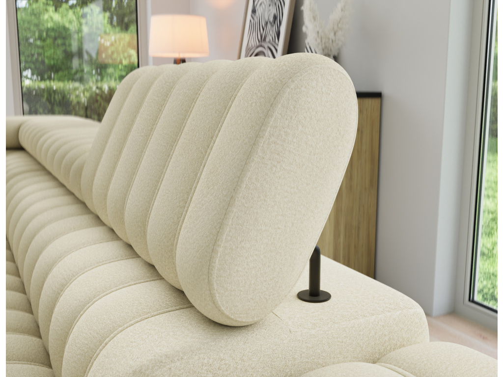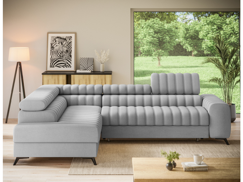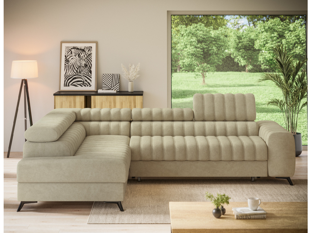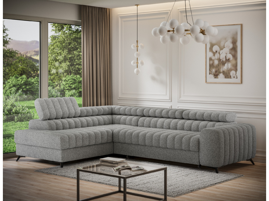 Rohová sedací souprava Kanedo je designový a vysoce funkční čalouněný kus, který kombinuje moderní estetiku s výjimečným komfortem, takže je ideální volbou pro prostorný obývací pokoj nebo relaxační zónu. Tento model s celkovými rozměry 269 × 204 × 86 cm a hmotností 146,2 kg vyniká pevnou konstrukcí a pečlivě profilovanými prvky, které poskytují ergonomickou oporu těla a vynikající relaxaci. Sedák je vybaven vlnovcovými pružinami typu B a kombinací pěny T3030 a profilované vysoce pružné pěny HR3030, které zajišťují optimální pružnost, odolnost a dlouhotrvající komfort sezení i při intenzivním používání. Opěradlo vyplněné polyuretanovou pěnou T2130 nabízí stabilní oporu a zvyšuje každodenní pohodlí. Rohová sedací souprava Kanedo má praktickou funkci spaní s plochou 194 × 124 cm, zatímco mechanismus Dolphin umožňuje rychlé a snadné rozložení. Další výhodou je prostorný úložný prostor na lůžkoviny o rozměrech 180 × 92 × 17 cm, který poskytuje pohodlné uložení textilií a činí z rohové sedací soupravy Kanedo vynikající volbu pro ty, kteří hledají moderní rohovou sedací soupravu s funkcí spaní, úložným prostorem a odolnou a kvalitní výplní.