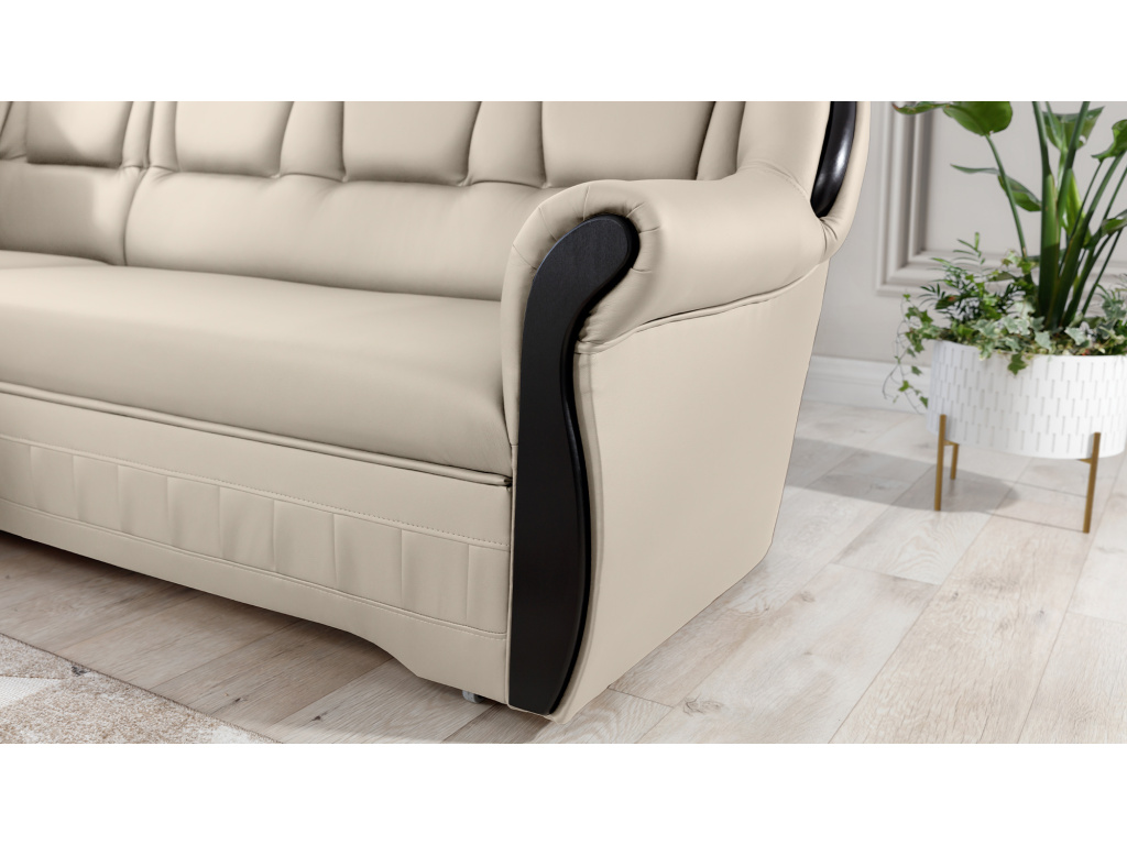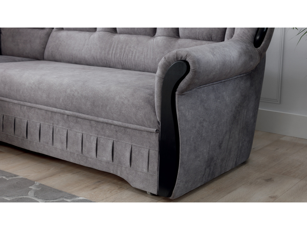 Lord je elegantní a vkusná rohová pohovka, která je nejen funkčním kusem nábytku, ale díky svému designu se může stát i mimořádnou ozdobou obývacího pokoje. Rozměry 243 x 180 x 105 cm zaručují velký prostor pro relaxaci během dne a díky funkci intuitivního rozkládacího systému typu delfín lze toto pohodlí pocítit i v noci. Prostorná spací plocha o rozměrech 195 x 125 cm vám umožní vychutnat si výjimečnou měkkost a flexibilitu sedáku našeho nábytku. To vše je zásluhou vlnité pružiny a pěny T30, ze které je roh vyroben, díky čemuž je tělo během odpočinku stabilizováno a správně podepřeno. Díky takovému použití je minimalizováno riziko vzniku nevzhledných promáčklin, poškození a oděrek a naše tělo si vždy udržuje správnou polohu. U modelu Lord nelze nevěnovat pozornost: zaobleným opěradlům, pohodlným loketním opěrám, prostorným sedákům, prostornému lůžku, vkusnému prošívání, jedinečnému tělu a stylu, ve kterém je roh zachován. Mít doma takovou jedinečnou rohovou pohovku jistě stojí za to.
