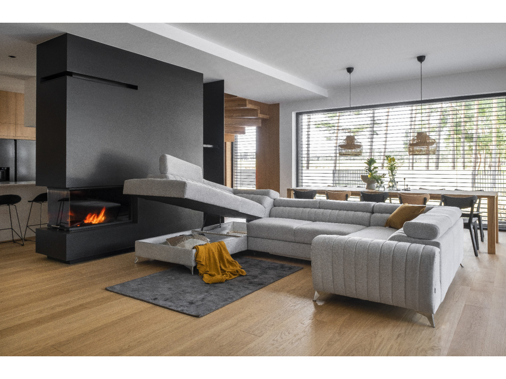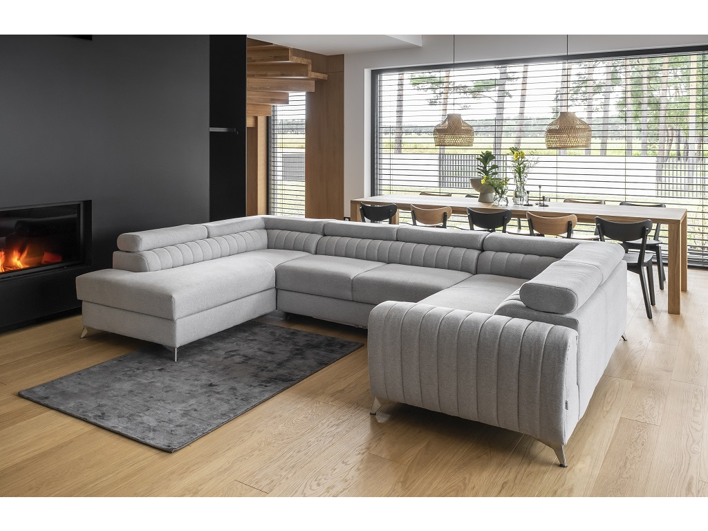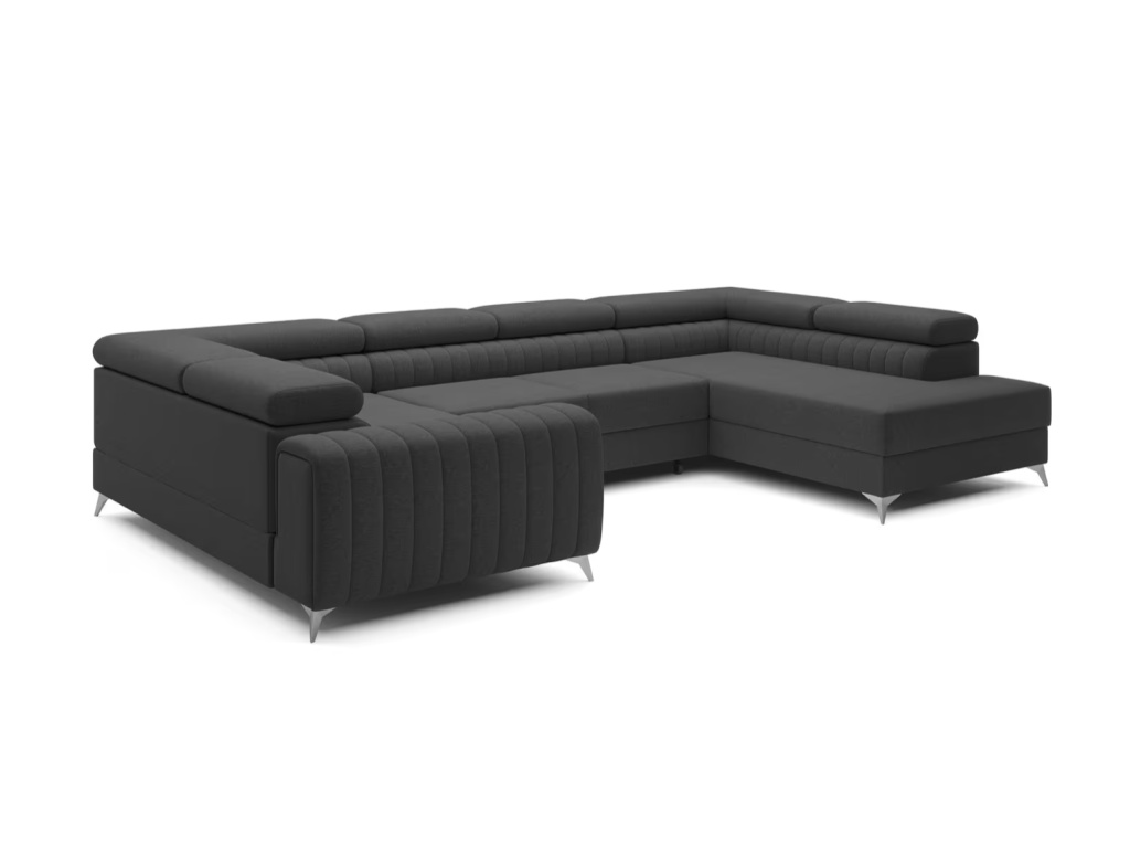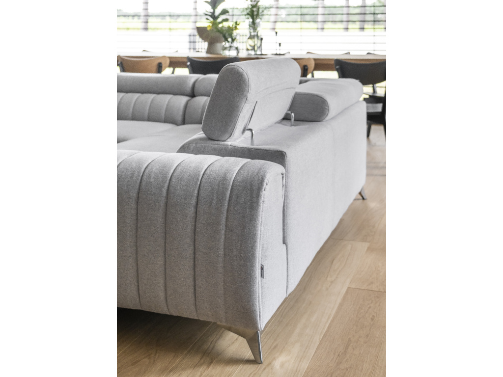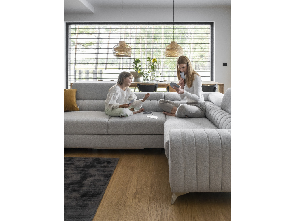 Rohová pohovka Louis je pohodlná, stylová a především funkční. Sedačku tvoří vlnité pružiny a výplň z pěny T30 a vysoce odolné HR pěny, která se dokonale přizpůsobí tělu a zvyšuje pohodlí. Rozměry rohové sedací soupravy Louis - 347 x 202 x 92 cm - dále zvyšují úroveň pohodlí. Mezi její přednosti patří čtyři polohovatelné opěrky hlavy, zásobník na lůžkoviny a velká spací plocha o rozměrech 254 x 123 cm. Rozkládací mechanismus "delfín" použitý u tohoto kusu je navíc jednoduchý a intuitivní. Barvu čalounění rohové pohovky Louis si můžete vybrat také z palety látek kolekce Natali. Za zmínku stojí také designové nožky pohovky - jsou vyrobeny z chromované oceli a vysoké a dodávají nábytku elegantní nádech. Estetické kvality dále podtrhuje svislé prošívání na bocích a zádech pohovky Louis.