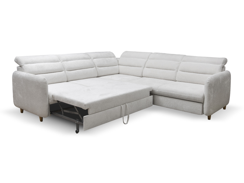 Praktičnost sedací soupravy Mamos L je zvýrazněna jejím univerzálním rozmístěním, které umožňuje flexibilní umístění v místnosti podle potřeb a prostorových možností. Navíc, díky snadno ovladatelnému rozkládacímu mechanismu se tato sedací souprava během okamžiku promění v pohodlnou postel, zatímco integrovaný úložný prostor poskytuje dostatek místa pro ukládání ložního prádla nebo jiných předmětů, což je ideální pro efektivní využití prostoru.