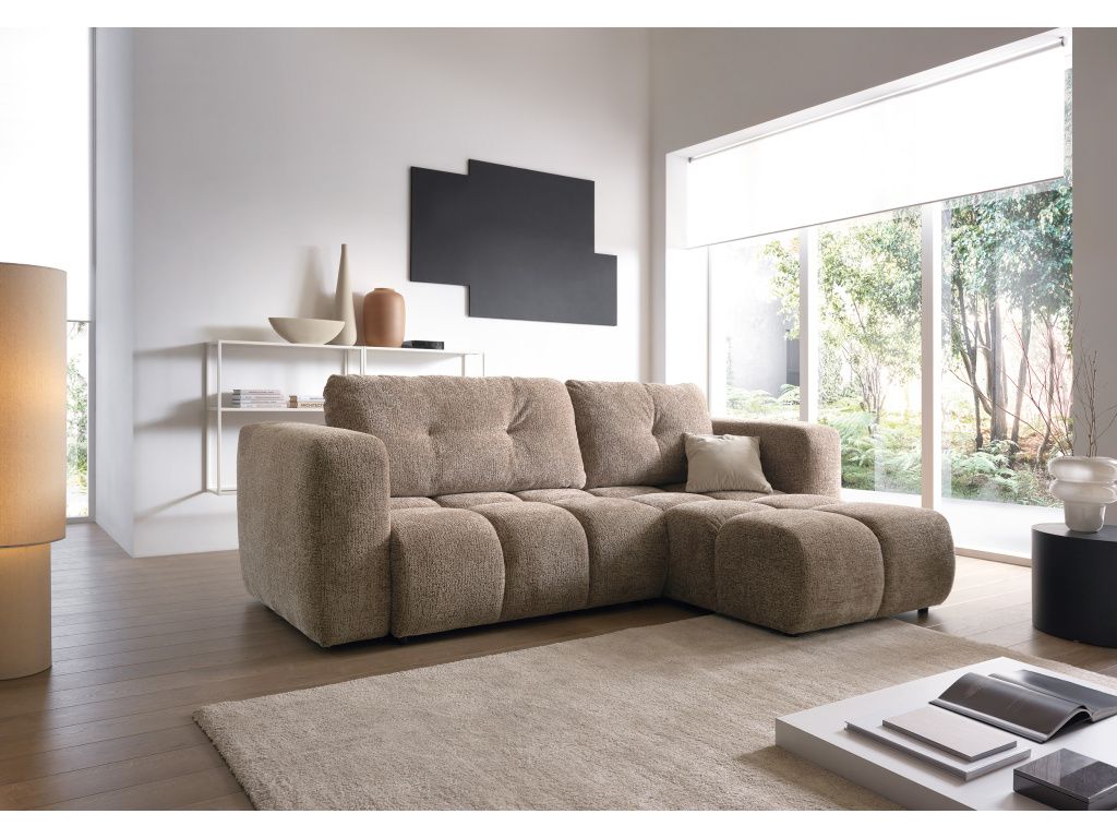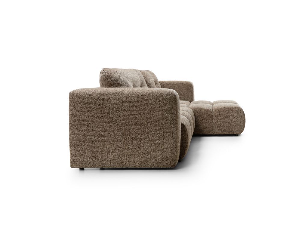 Sedací souprava Modi II navazuje na oblíbený design řady Modi, tentokrát ve větším provedení, které nabízí ještě více prostoru pro pohodlné sezení i relaxaci. Díky rozměrům 273 × 91,5 × 176 cm působí vzdušně, ale zároveň poskytuje dostatek místa pro celou rodinu. Sedačka je vybavena praktickou funkcí rozkladu typu DL, díky které ji snadno přeměníte na lůžko o velikosti 212 × 145 cm, vhodné i pro pravidelnější spaní. Součástí je také úložný prostor na lůžkoviny, který pomáhá udržet pořádek v interiéru. O komfort se postarají sedáky z kvalitní PUR pěny v kombinaci s čalounickými popruhy a měkké opěrné polštáře se silikonovou výplní. Čalouněná záda umožňují umístění sedačky i do prostoru. Sedačka je univerzální, lze ji tedy přizpůsobit dispozici místnosti. Stabilitu zajišťují plastové nožky v černé barvě. Modi II je ideální volbou pro ty, kteří hledají prostornou, pohodlnou a funkční sedačku v moderním minimalistickém designu.