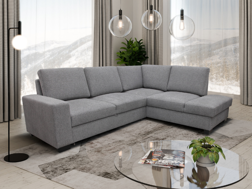 Sedací souprava Royal je dokonalou kombinací moderního designu, pohodlí a praktičnosti, která se stane středobodem vašeho obývacího pokoje. Díky pevné kostře z masivního dřeva a dřevotřísky nabízí vysokou stabilitu a dlouhou životnost. Sedák je vybaven vlnitými pružinami bonell a falista spolu s kvalitní polyuretanovou (PUR) pěnou, zatímco opěrák je rovněž polstrovaný PUR pěnou pro maximální komfort při sezení. Rozkládací mechanismus umožňuje jednoduchou přeměnu na lůžko o rozměrech 140 x 213 cm, ideální pro každodenní odpočinek nebo příležitostné přespání. Sedací souprava je dostupná v levém i pravém provedení a široký výběr látek za zvýhodněné ceny umožňuje její přizpůsobení vašemu stylu a potřebám.