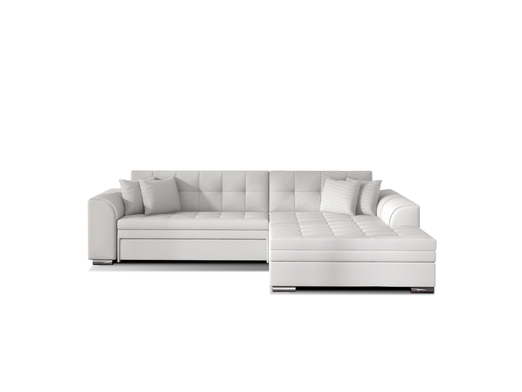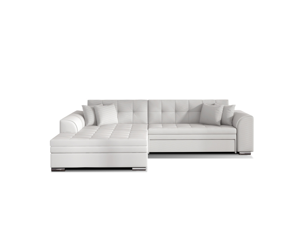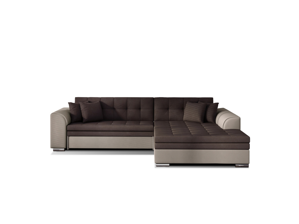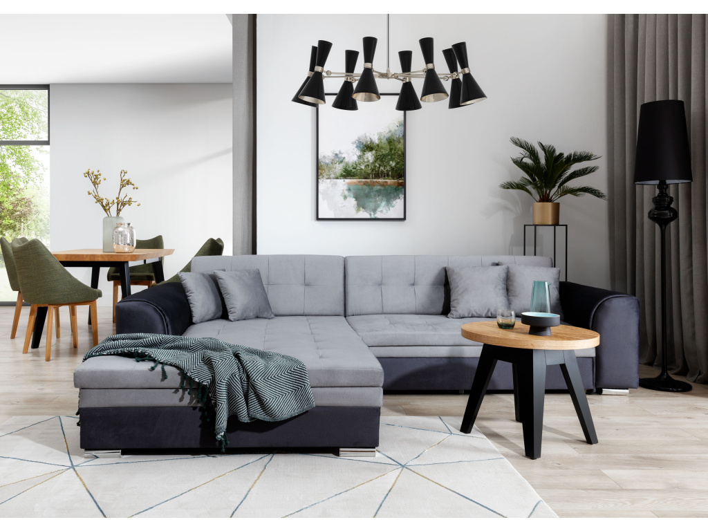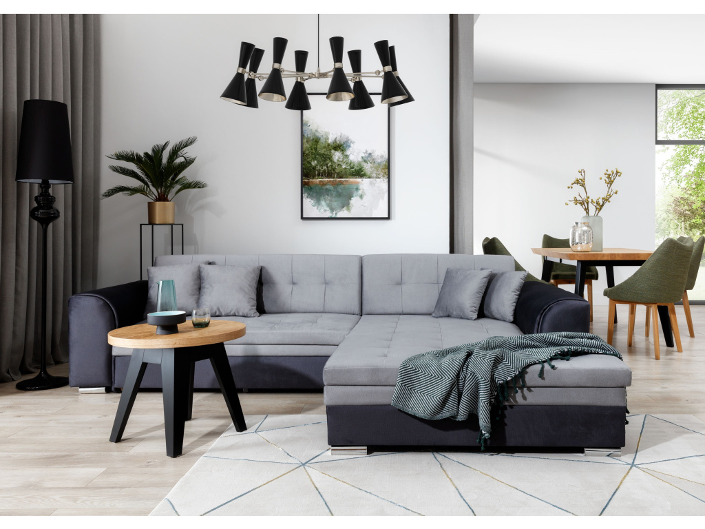 Sorento je stylová, multifunkční rohová pohovka se stabilní konstrukcí ve tvaru L, která vám bude sloužit jako kus nábytku po mnoho let. Pohovka o rozměrech 295 x 195 x 80 cm se dobře uplatní nejen jako místo pro denní odpočinek, ale také jako ústřední dekorace obývacího pokoje. Díky mechanismu typu delfín je rohová pohovka Sorento vhodná i pro noční odpočinek. Spací plocha o rozměrech 210 x 126 cm zajistí dlouhý spánek a plnohodnotnou relaxaci. Maximální pohodlí zaručuje kombinace vlnité pružiny a pěny T30, ze které je vyroben sedák. Při výběru rohové sedací soupravy Sorento stojí za povšimnutí její neobvyklý styl a také: tvarované opěradlo, zaoblené područky a stylové prošívání, které jí dodávají charakter. Sorento je styl, pohodlí a třída sama o sobě. Určitě stojí za to mít takový kus nábytku ve svém bytě. Sorento je styl, pohodlí a třída sama o sobě. Určitě stojí za to mít takový kus nábytku ve svém bytě.
