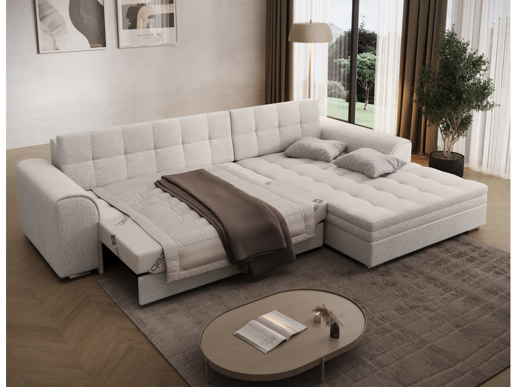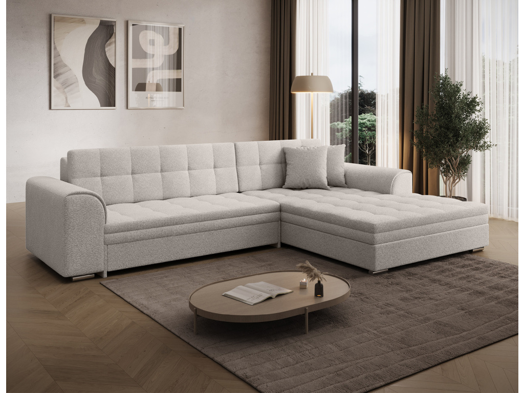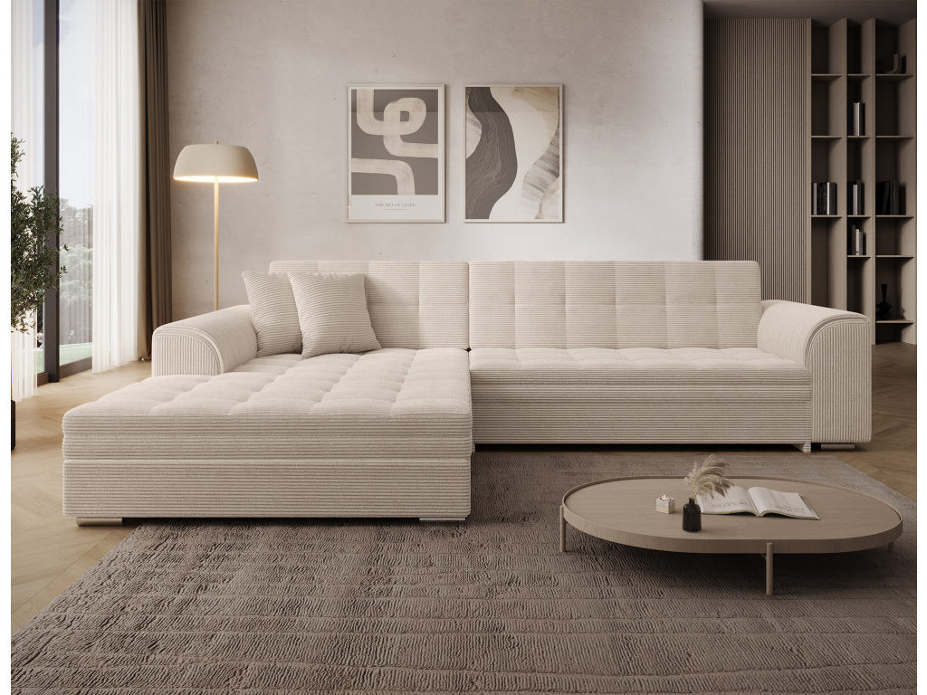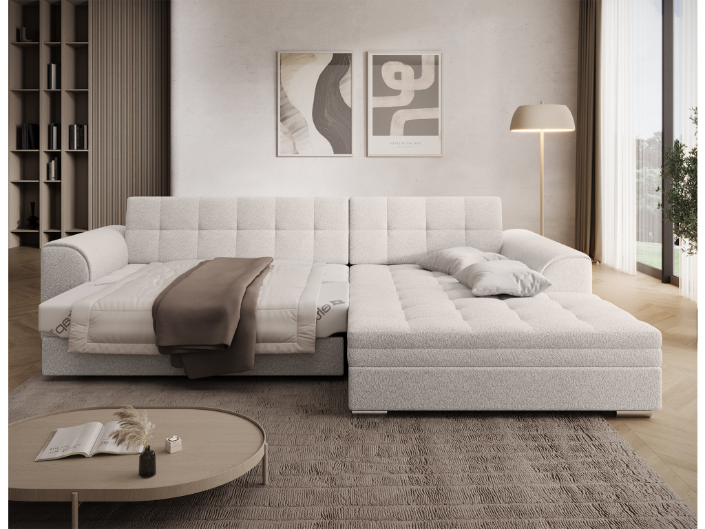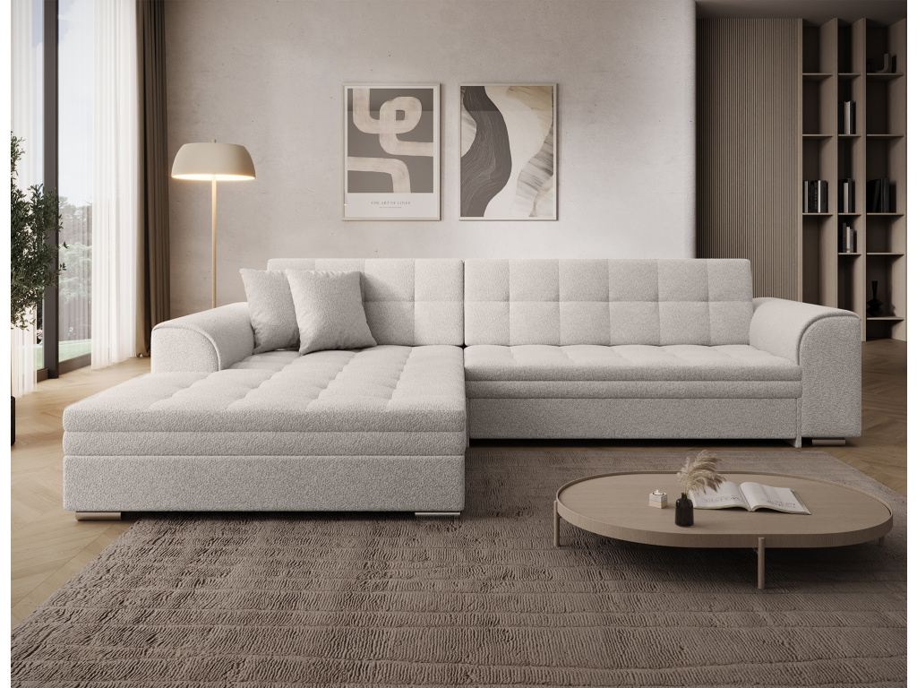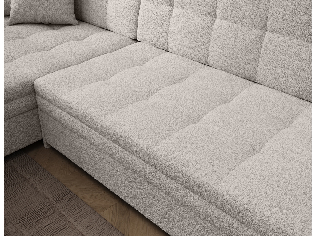Sorento je stylová, multifunkční rohová pohovka se stabilní konstrukcí ve tvaru L, která vám bude sloužit jako kus nábytku po mnoho let. Pohovka o rozměrech 295 x 195 x 80 cm se dobře uplatní nejen jako místo pro denní odpočinek, ale také jako ústřední dekorace obývacího pokoje. Díky mechanismu typu delfín je rohová pohovka Sorento vhodná i pro noční odpočinek. Spací plocha o rozměrech 210 x 126 cm zajistí dlouhý spánek a plnohodnotnou relaxaci. Maximální pohodlí zaručuje kombinace vlnité pružiny a pěny T30, ze které je vyroben sedák. Při výběru rohové sedací soupravy Sorento stojí za povšimnutí její neobvyklý styl a také: tvarované opěradlo, zaoblené područky a stylové prošívání, které jí dodávají charakter. Sorento je styl, pohodlí a třída sama o sobě. Určitě stojí za to mít takový kus nábytku ve svém bytě. Sorento je styl, pohodlí a třída sama o sobě. Určitě stojí za to mít takový kus nábytku ve svém bytě.