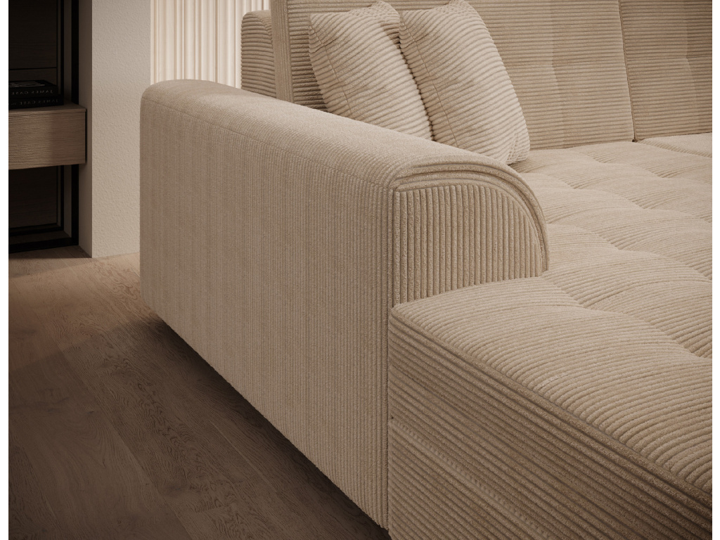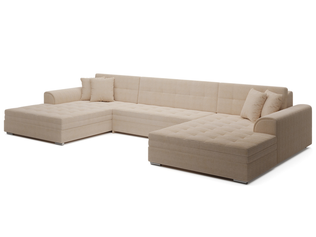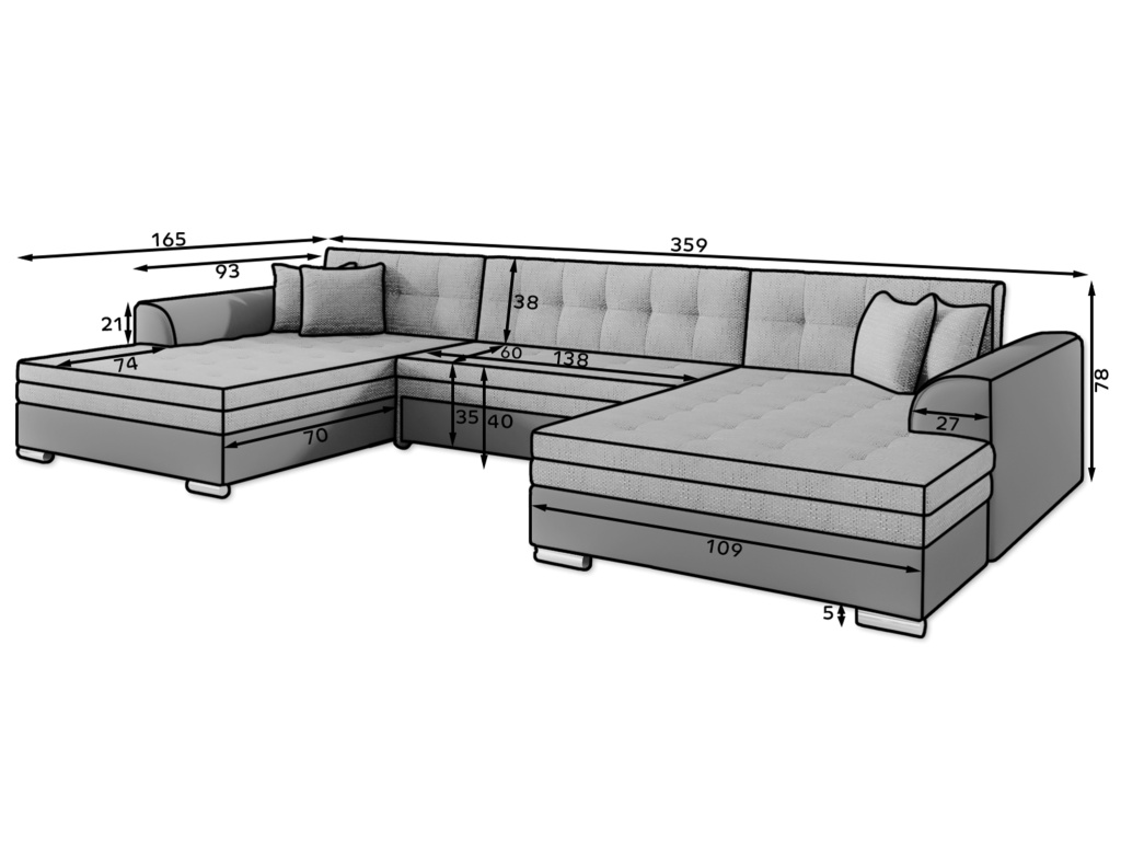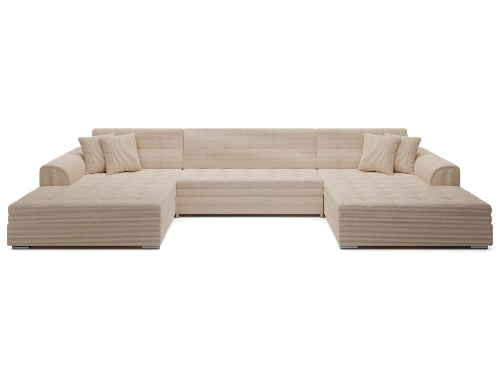 Vento je pohodlná, stylová a prostorná rohová sedací souprava o rozměrech 355 x 165 x 80 cm. Rohová sedací souprava Vento zaručuje odpočinek a pohodlí na nejvyšší úrovni, a to především díky správnému profilování opěradel a výplni sedáků pěnou T30 a vlnitou pružinou, která je odolná proti deformaci. Další výhodou rohové sedací soupravy ve tvaru U je možnost její přeměny na prostorné lůžko o rozměrech 305 x 126 cm. Souprava se dodává s dekoračními polštáři, které bez ohledu na barvu vybrané rohové sedací soupravy jí dodají ještě výraznější charakter.