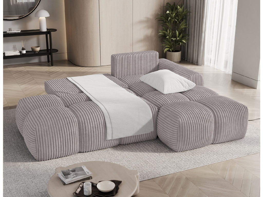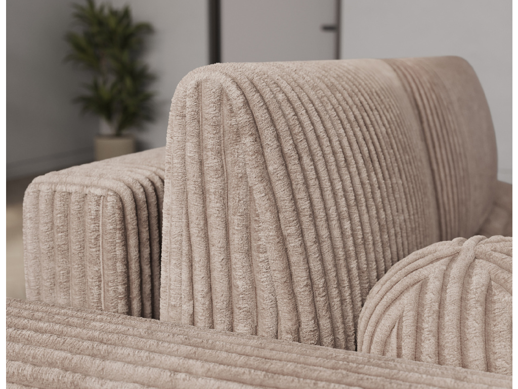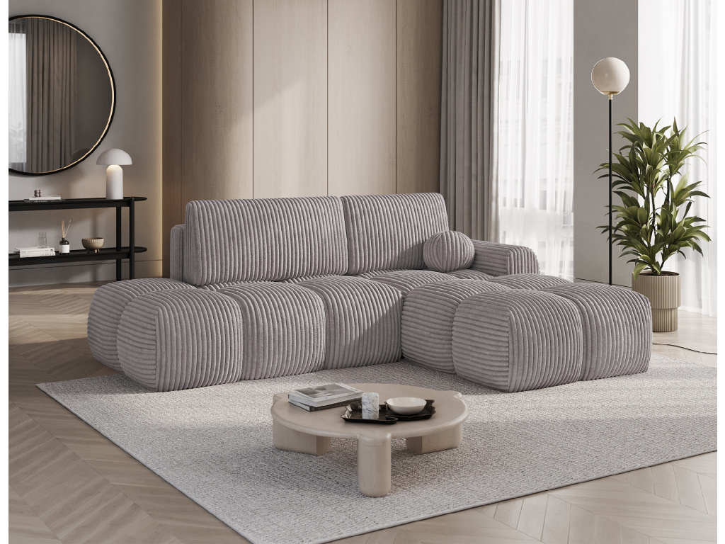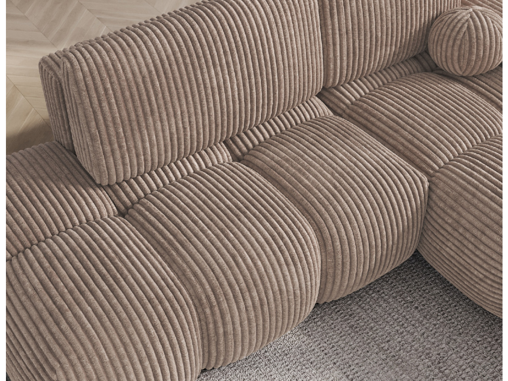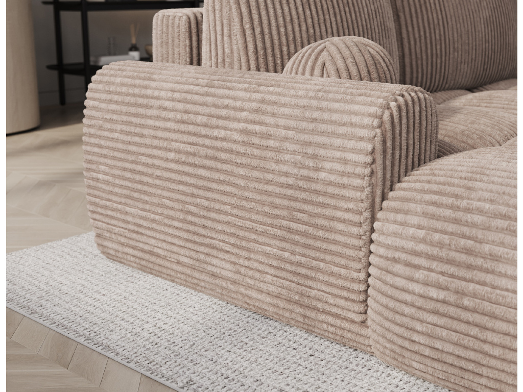 Rohová sedací souprava Vittario je moderní a funkční kus nábytku navržený pro maximální pohodlí. Její kubický tvar a měkké linie dokonale ladí s moderním designem interiéru. Má rozměry 227 × 170 × 95 cm a hmotnost 115,4 kg, což zajišťuje stabilitu a dlouhou životnost. Sedák je vyplněn vlnovcovou pružinou typu B, pěnou HR3030 a pěnou T2315. Opěradlo se skládá z polštářů vyplněných pěnovým granulátem, které se přizpůsobí tělu a poskytují měkké, relaxační pohodlí. Pohovka je vybavena funkcí spaní, která nabízí plochu 95 × 205 cm, a také DL mechanismem s pružinou, který podporuje snadné a rychlé rozložení. Další výhodou je úložný prostor na lůžkoviny, který pomáhá udržovat pořádek v obývacím pokoji. Vittario je kombinací praktičnosti, estetiky a pohodlí, která se skvěle hodí do moderních prostor.