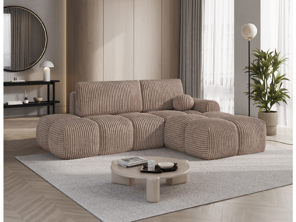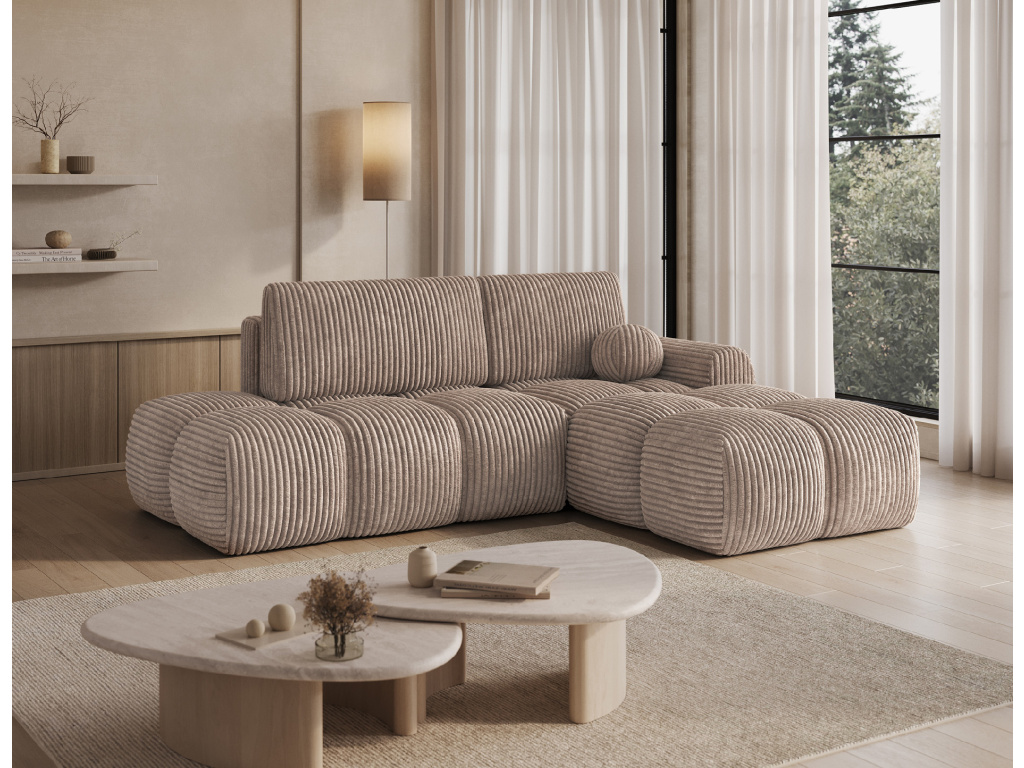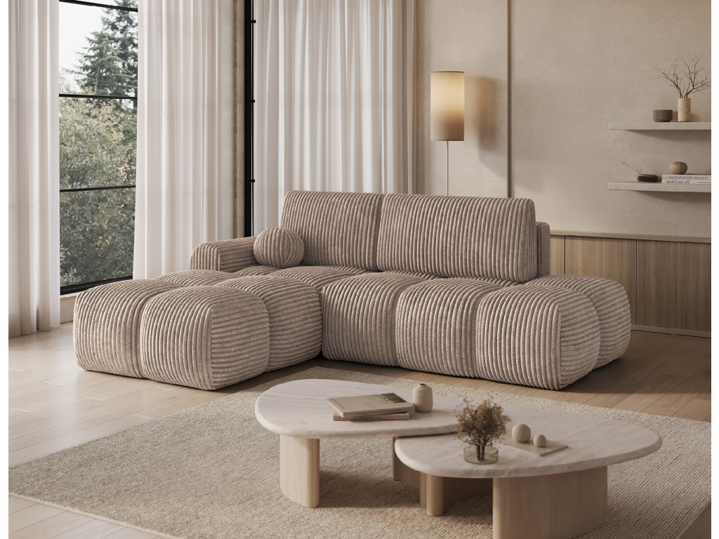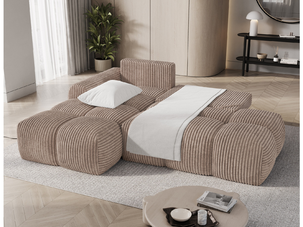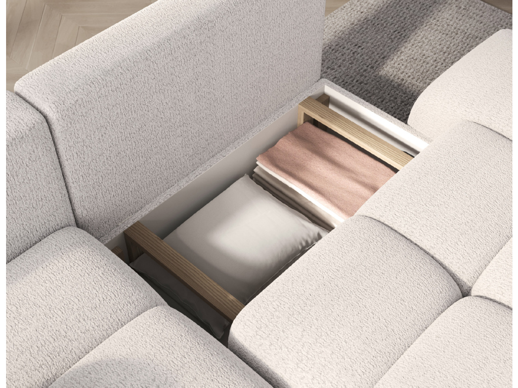 Rohová sedací souprava Vittario je moderní a funkční kus nábytku navržený pro maximální pohodlí. Její kubický tvar a měkké linie dokonale ladí s moderním designem interiéru. Má rozměry 227 × 170 × 95 cm a hmotnost 115,4 kg, což zajišťuje stabilitu a dlouhou životnost. Sedák je vyplněn vlnovcovou pružinou typu B, pěnou HR3030 a pěnou T2315. Opěradlo se skládá z polštářů vyplněných pěnovým granulátem, které se přizpůsobí tělu a poskytují měkké, relaxační pohodlí. Pohovka je vybavena funkcí spaní, která nabízí plochu 95 × 205 cm, a také DL mechanismem s pružinou, který podporuje snadné a rychlé rozložení. Další výhodou je úložný prostor na lůžkoviny, který pomáhá udržovat pořádek v obývacím pokoji. Vittario je kombinací praktičnosti, estetiky a pohodlí, která se skvěle hodí do moderních prostor.