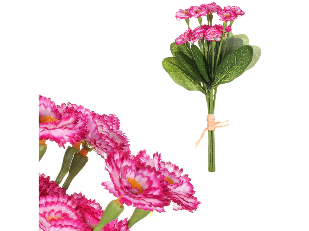 Kytice z umělých sedmikrásek v bordó barvě je jedinečnou dekorací, která přináší nekonečnou krásu a radost. Je skvělou volbou pro ty, kteří chtějí mít krásné květiny bez starostí a péče. Nemusíte se trápit zaléváním a případně tím, že vám brzy uvadne, protože jako umělá vydrží po celou dobu v plné kráse. Bez ohledu na roční období, vám poskytne oslnivou výzdobu každého místa nebo vybrané události. Široký výběr květin podle druhů a barev umožňuje, aby si každý vybral tu, která nejlépe vyhovuje jeho preferencím a stylu. Všechny umělé rostliny jsou věrnou kopií svých živých protějšků, a udržují svou nádhernou podobu v plném květu po celý rok. Vytvořte si díky této dekoraci dokonalou atmosféru bez starostí a užívejte si nikdy nekončící květinovou výzdobu.Doplňkové parametry