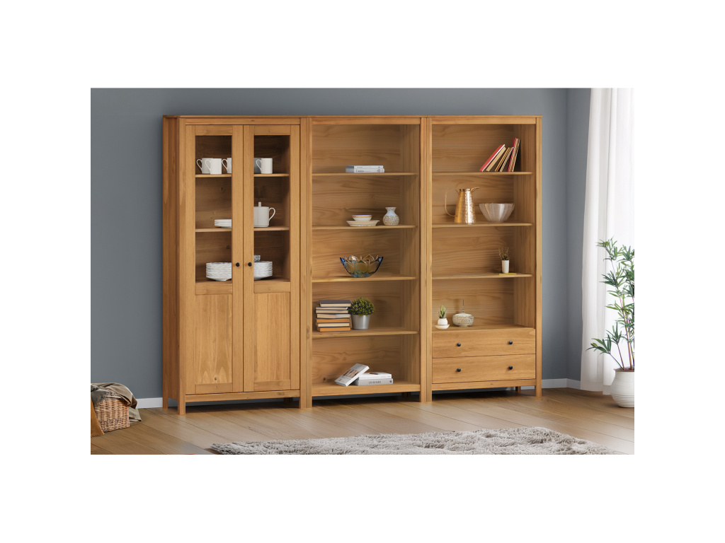 Vneste do svého interiéru hřejivou atmosféru přírodního dřeva a nadčasového designu se sestavou nábytku TORINO. Tato kombinace tří stylových kusů – dvou knihoven (TORINO 8070V a 8071V) a vitríny (TORINO 8072V) – zaujme nejen svým rustikálním vzhledem, ale i praktickým uspořádáním. Vyrobeno z masivní borovice a ošetřeno kvalitním voskem v medovém odstínu, dřevo vyniká svou přirozenou kresbou a teplým tónem. Celek doplňují elegantní kovové úchytky v barvě černěné mosazi, které dodávají nábytku charakter a šmrnc.