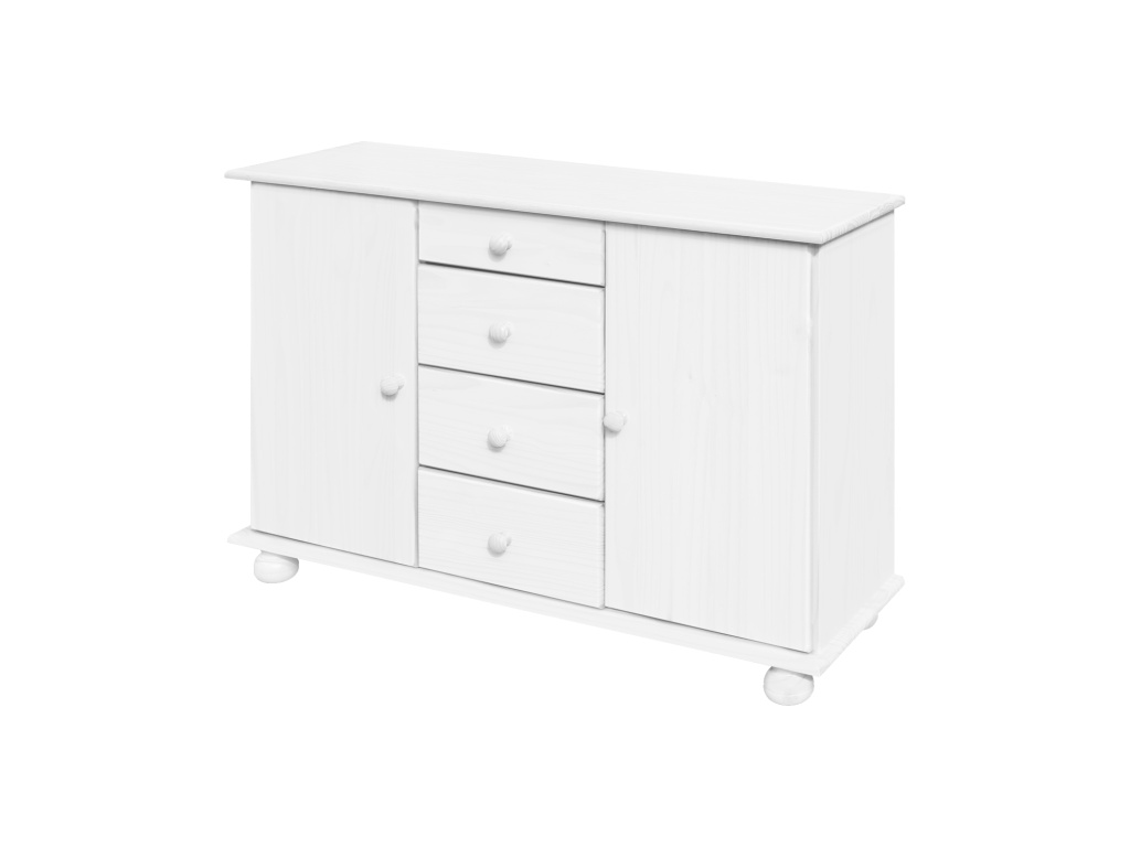 Sestava příborníku 8045B a nástavce 8046B v elegantním bílém laku z masivní borovice přináší do interiéru svěží vzhled, přírodní materiál a praktické využití. Příborník nabízí 4 zásuvky s kovovými pojezdy a 2 uzavíratelné skříňky s vnitřní policí, ideální pro ukládání příborů, nádobí i textilu. Nástavec s 2 prosklenými dvířky umožňuje vystavení dekorací, sklenic nebo porcelánu. Díky svým rozměrům – příborník 119 × 38 × 81 cm, nástavec 119 × 30 × 108 cm – se hodí i do menších prostor a nabízí praktický i stylový úložný prostor v nadčasovém designu.