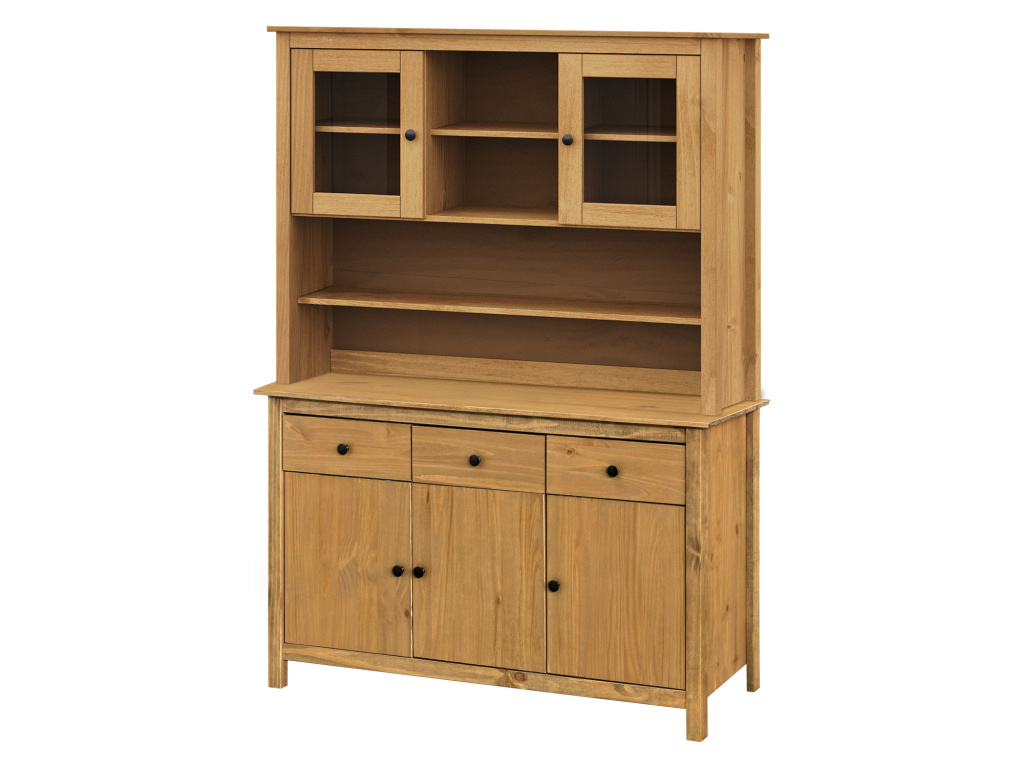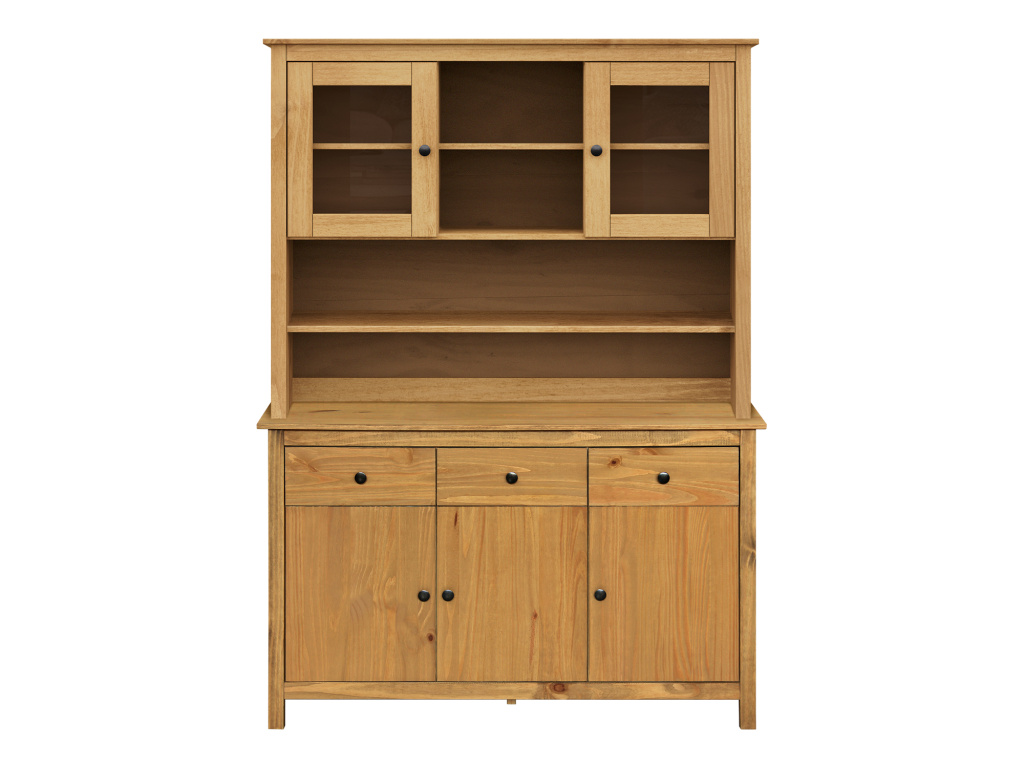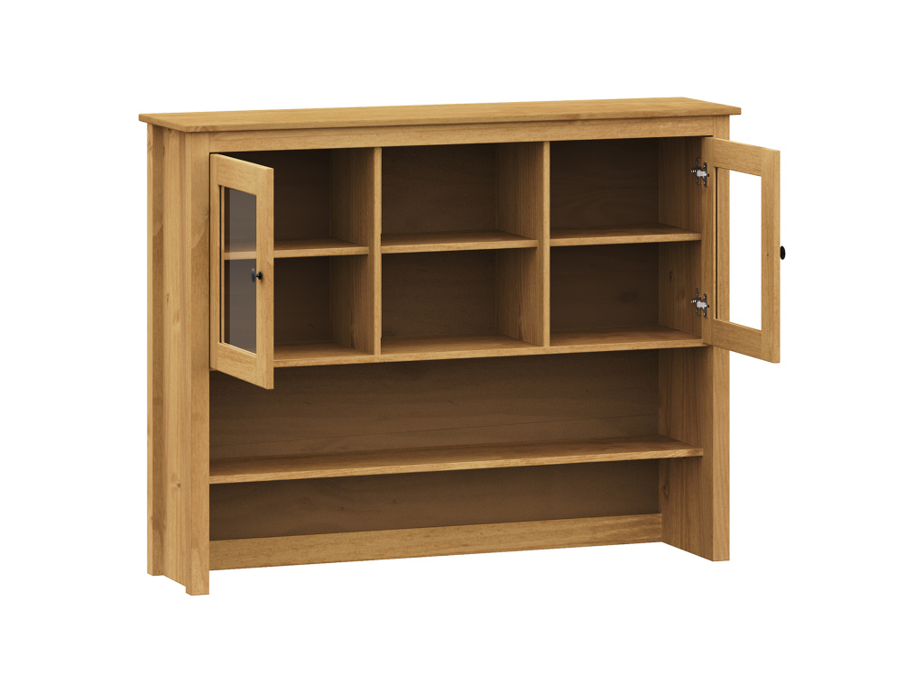 Sestava příborníku TORINO v sobě spojuje eleganci přírodního dřeva, poctivé řemeslné zpracování a praktické využití. Kombinace příborníku TORINO 8062V a nástavce TORINO 8063V vytváří harmonický celek, který se stane dominantou každé jídelny či obývacího prostoru. Nábytek je vyroben z masivní borovice a povrchově ošetřen kvalitním voskem v medovém odstínu, jenž zvýrazňuje kresbu dřeva a dodává mu hřejivý charakter. Příborník nabízí tři dvířka a tři zásuvky s kovovými pojezdy pro pohodlné a přehledné uložení nádobí či textilií, zatímco nástavec s dvojími prosklenými dvířky umožňuje vystavit dekorace nebo skleněný servis. Styl doplňují kovové úchytky v provedení černěná mosaz, které podtrhují rustikální eleganci celé kolekce. Rozměry příborníku: 129 × 40 × 80 cm, rozměry nástavce: 129 × 33 × 100 cm. Sestava TORINO je dokonalým spojením krásy, funkčnosti a trvanlivosti přírodního masivu.