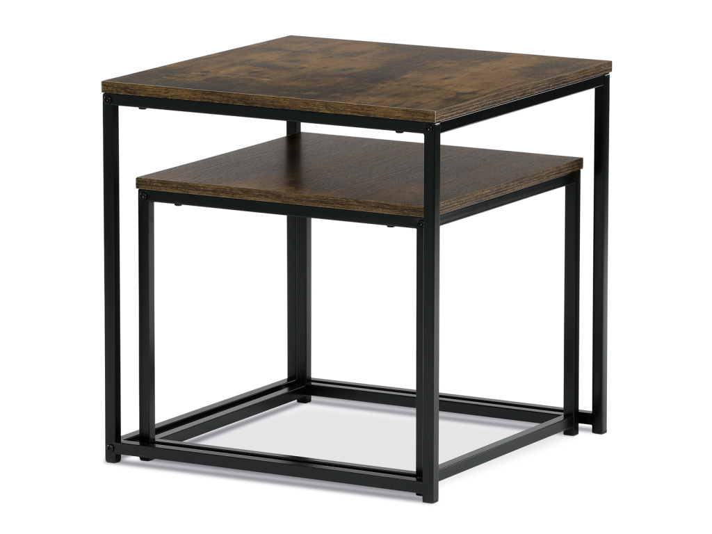 Set 2 ks odkládacích stolků, MDF, dekor divoký dub, kov, černý lak - AF-076 OLW